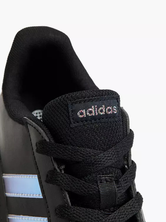 About this article adidas has given the classic Grand Court for kids a modern update. The soft synthetic leather upper can withstand a lot of play and romping, while the flexible rubber cupsole protects and stabilizes growing children's feet. It's no wonder this shoe appeals to more than just the little ones! The upper is made with various recycled materials and has a recycled content of at least 50%.