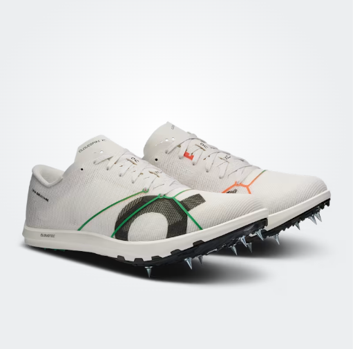 The Women’s Cloudspike XC is a lightweight, high-traction cross-country spike. Featuring Helion™ HF Hyperfoam for smooth landings, and a Speedboard® for all-day stability. Its one-piece mesh upper provides breathability and efficient water drainage. A new sockliner ensures easy on/off, while the wider collar enhances fit versatility. Six spikes and strategic heel grip deliver superior traction. Weight: 121 g; drop: 6 mm. Materials: vamp – 100% recycled polyester; tongue – 80% polyester, 20% polyurethane; collar lining – 100% recycled polyester. Care: wipe with a damp cloth, air dry, do not machine wash.