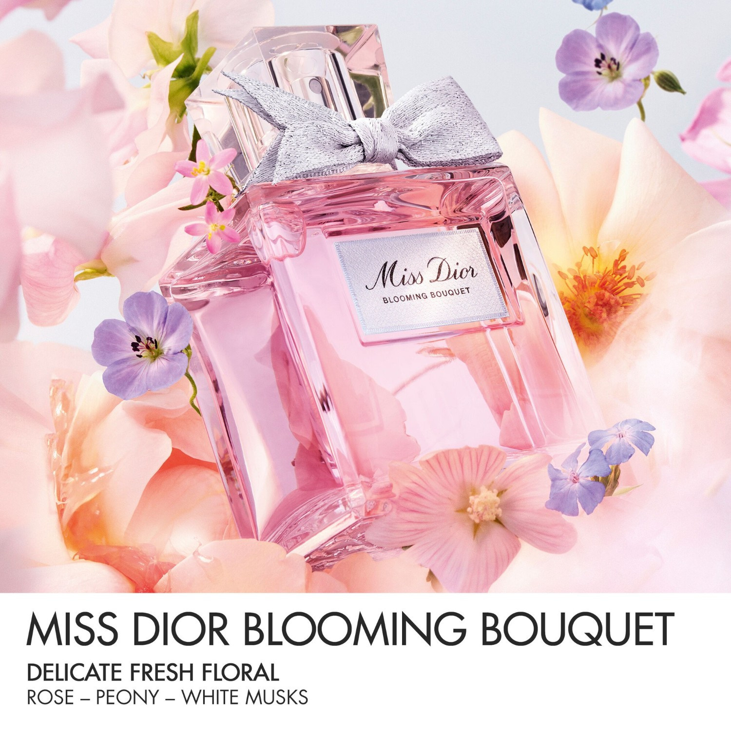 Miss Dior Blooming Bouquet is a fresh, delicate fragrance inspired by a blooming spring garden. The scent opens with lively bergamot and blossoms into a heart of romantic rose and peony, finishing with the softness of white musk. Like love at first sight, it leaves a spontaneous and emotional trail. The bottle is adorned with a hand-crafted colorful couture bow — a symbol of Dior’s heritage and craftsmanship, made by Maison Faure, ribbon makers since 1864.