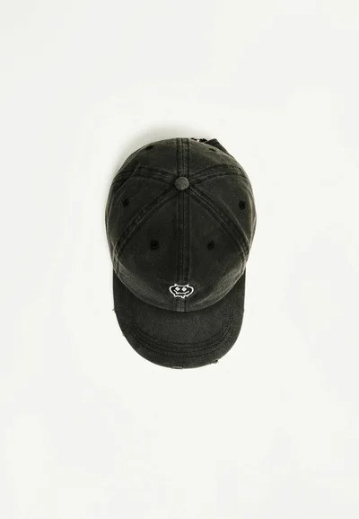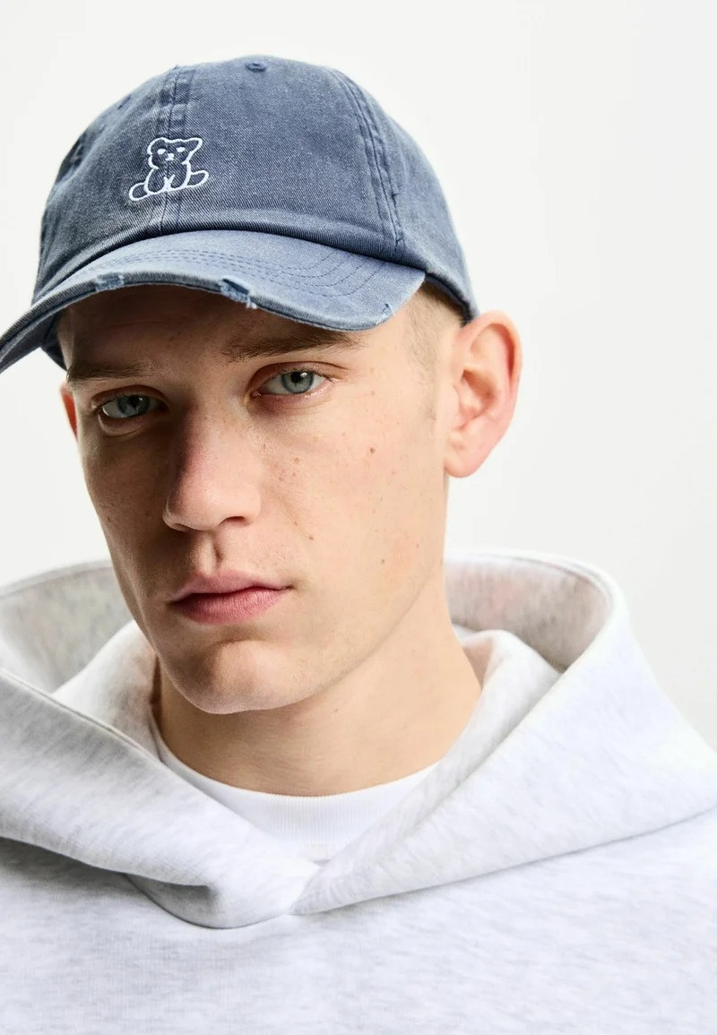 This Bershka cap features a stylish ripped look combined with subtle embroidery accents. Crafted entirely from cotton denim, it offers both breathability and comfort. The hook-and-loop fastening ensures a snug, adjustable fit. A great accessory for casual and streetwear-inspired outfits.