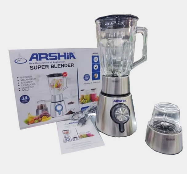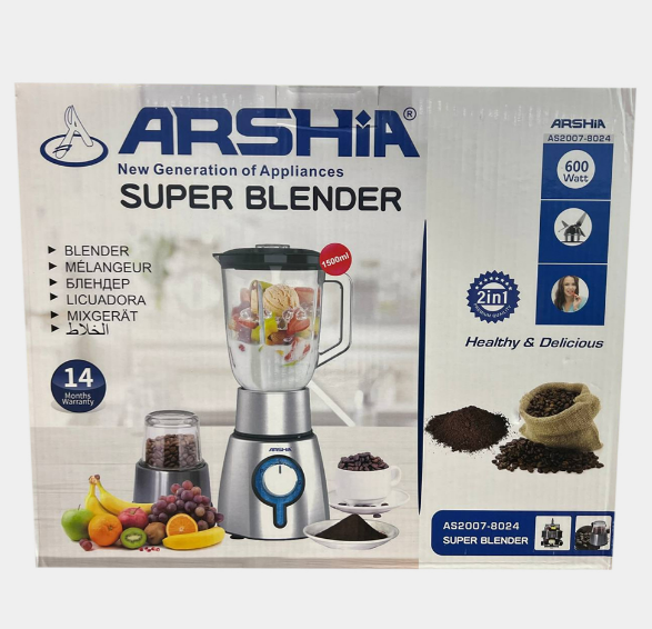 A powerful desktop blender with a glass bowl and stainless steel body. Make delicious coffee smoothies thanks to the 600W motor. The perfect smoothie texture even with frozen, hard and fibrous ingredients. Reliable Arshia engine: 600 W power, rotation speed up to 30 rpm. Easy to assemble and use: the container is easy to secure.