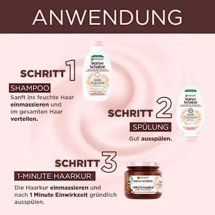 True Treasures Shampoo for Kids with Gentle Oat Milk 2-in-1 is ideal for gently cleansing delicate hair and sensitive scalp. The highly compatible formula contains silky rice cream and gentle organic oat milk. Rice cream hydrates the hair, while oat milk has a soothing effect. The shampoo does not sting the eyes and makes combing after washing easier — without any pulling. The caring formula has been tested under pediatric supervision. It is vegan and free from silicones — for a natural hair feel.