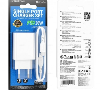 BOROFONE BA21A Pro Type-C to Type-C 1m-20W Charger