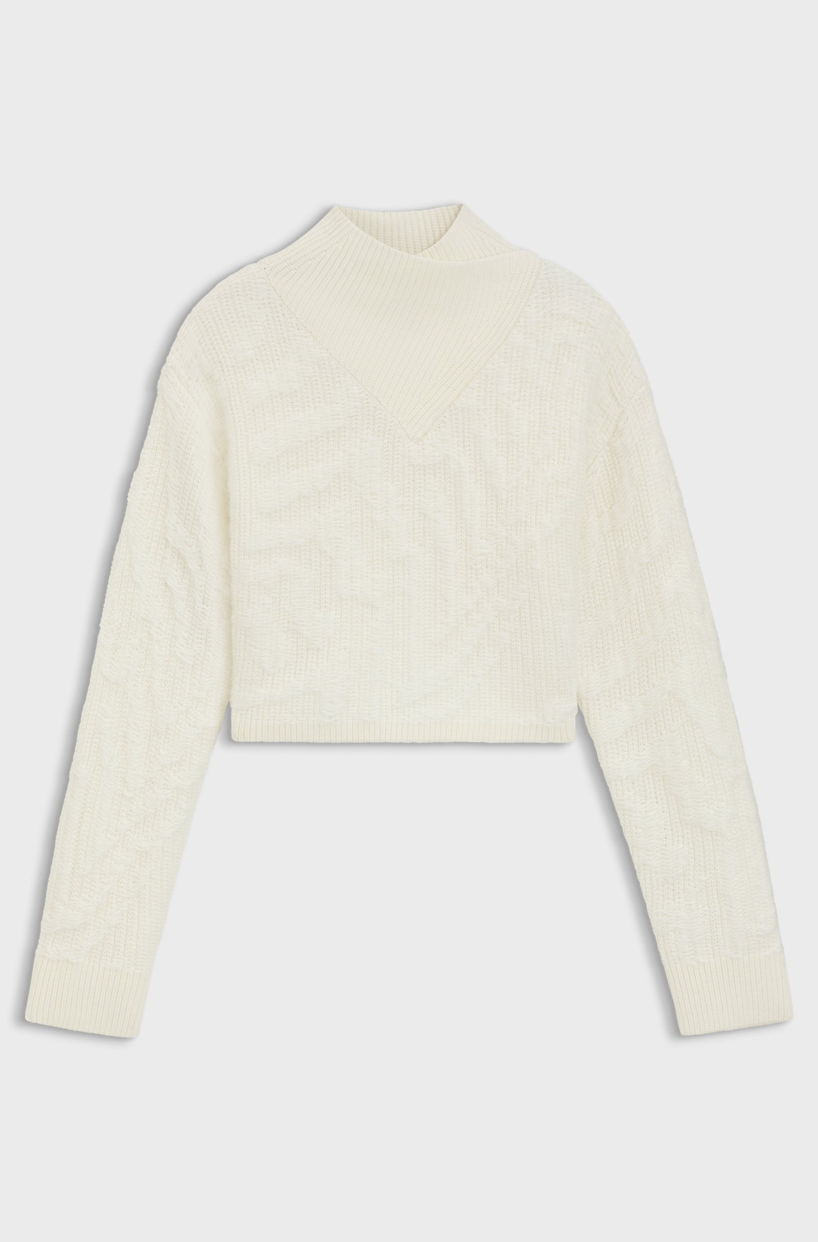 BOSS Cropped wool-blend sweater with layered neckline