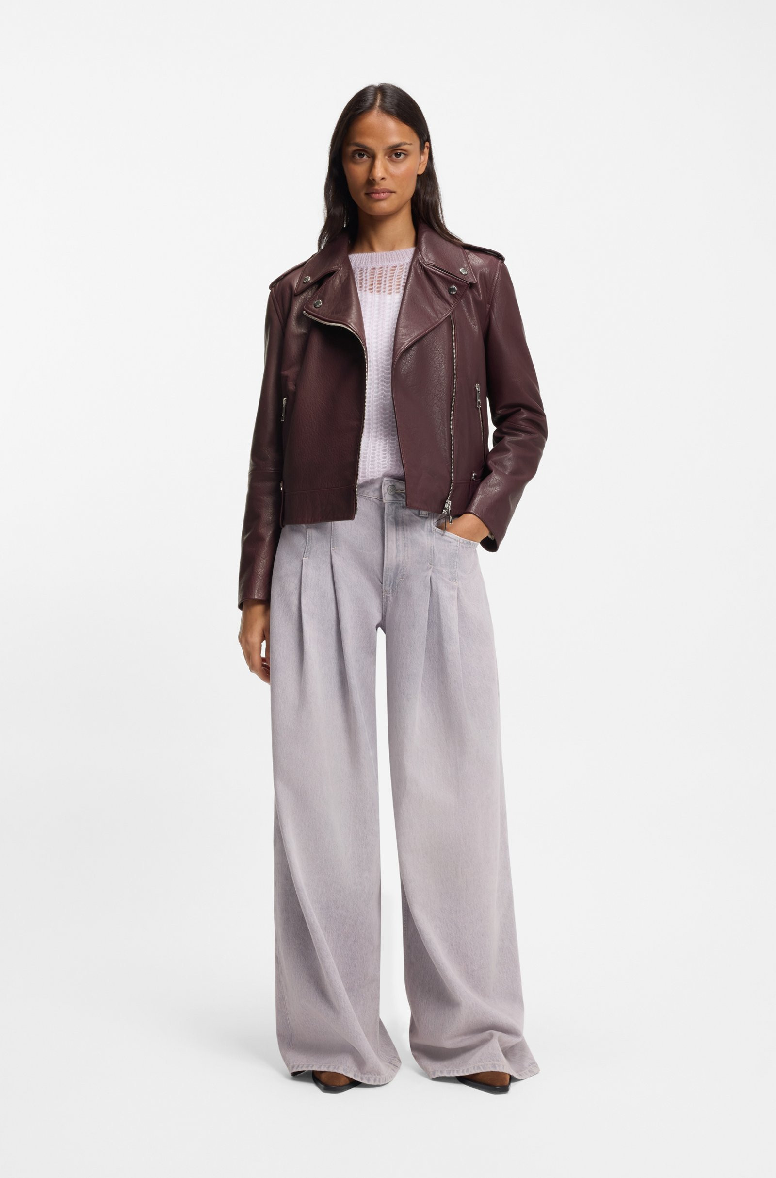 The model wears a size 36 and is 178 cm tall with a, 84 cm chest, 60 cm waist and 88 cm hips.