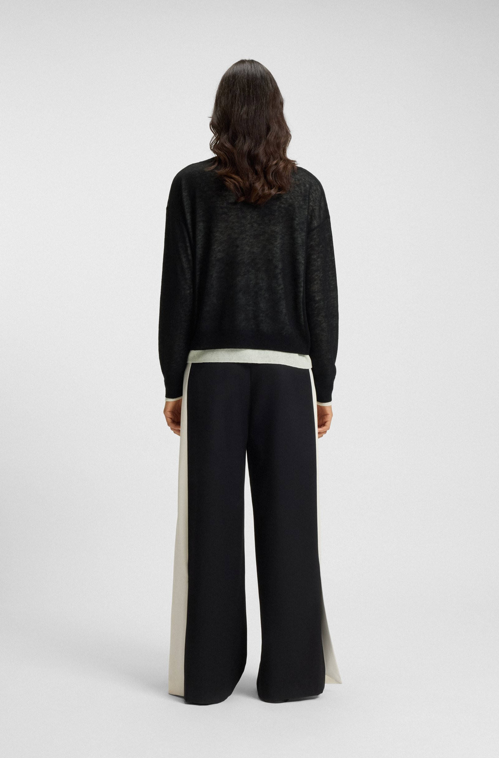 Elevate casual looks with this BOSS Womenswear sweater. Two-tone effect with a creative layered design. Blended with soft wool and alpaca for breathable comfort.