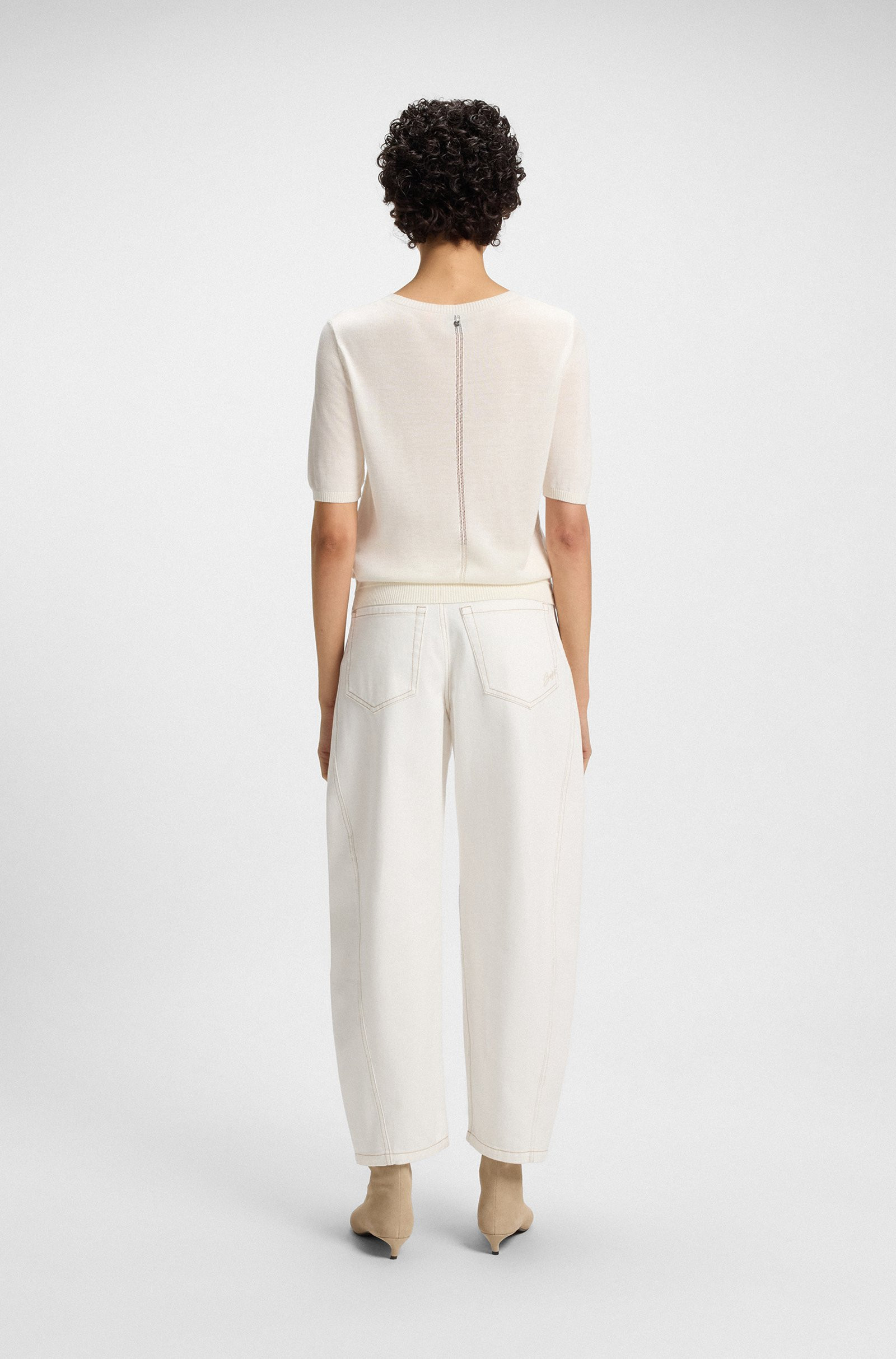 BOSS Short-sleeved knit sweater with openwork stitching