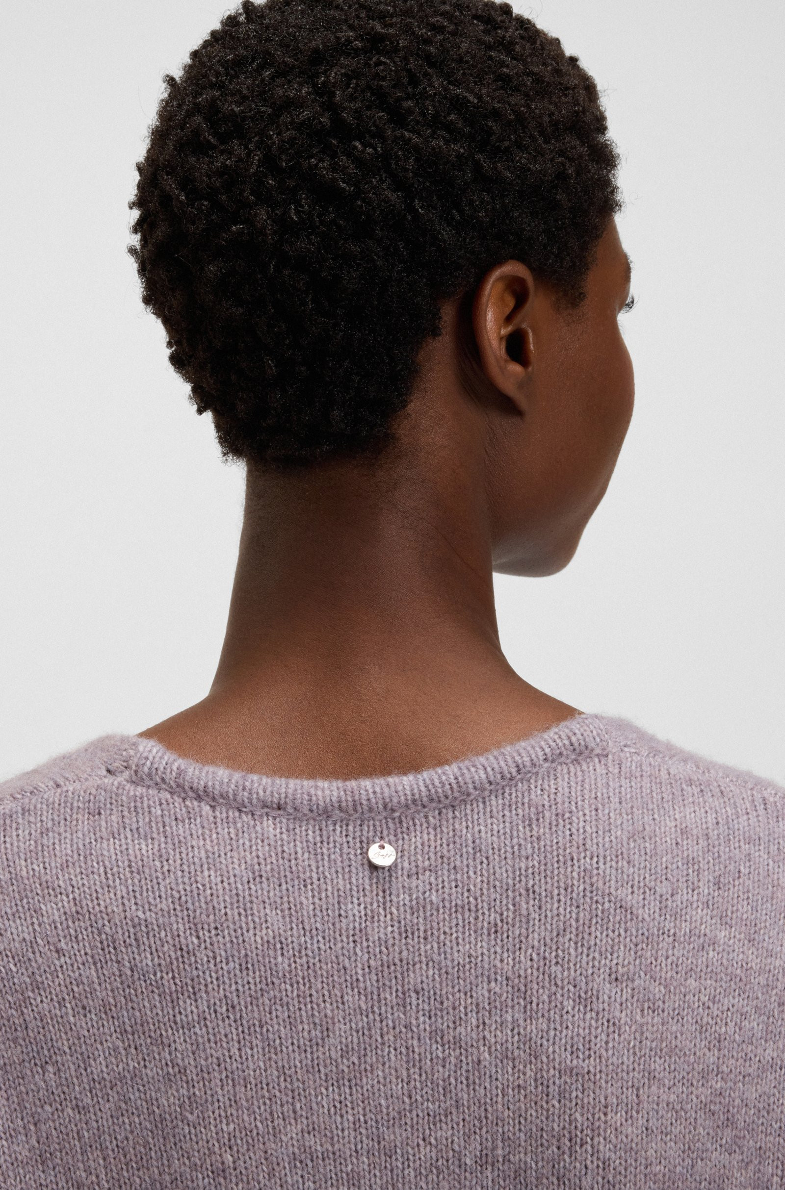 Featuring elegant open-knit details, this BOSS Womenswear sweater is crafted in finest Italian yarn with alpaca and wool. Relaxed fit. V neckline.