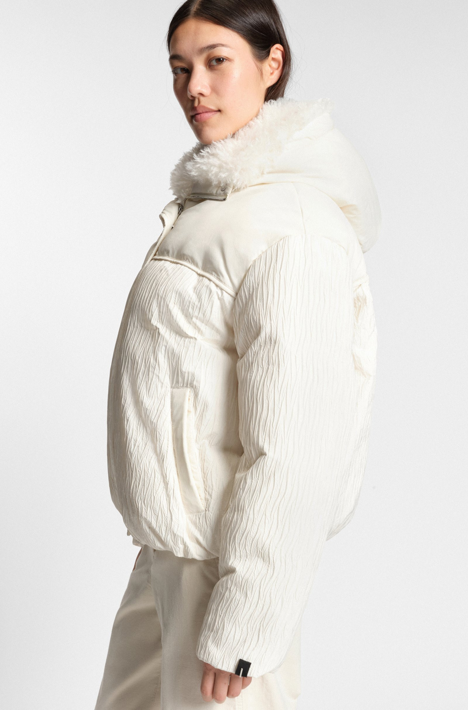 Material: 100% Polyester, Lining: 100% Polyamid, Filling: 100% Polyester, Cuff: 46% Polyacrylic, 28% Polyester, 26% Polyamid, Hood: 100% Polyester, yoke: 100% Polyamide (recycled)