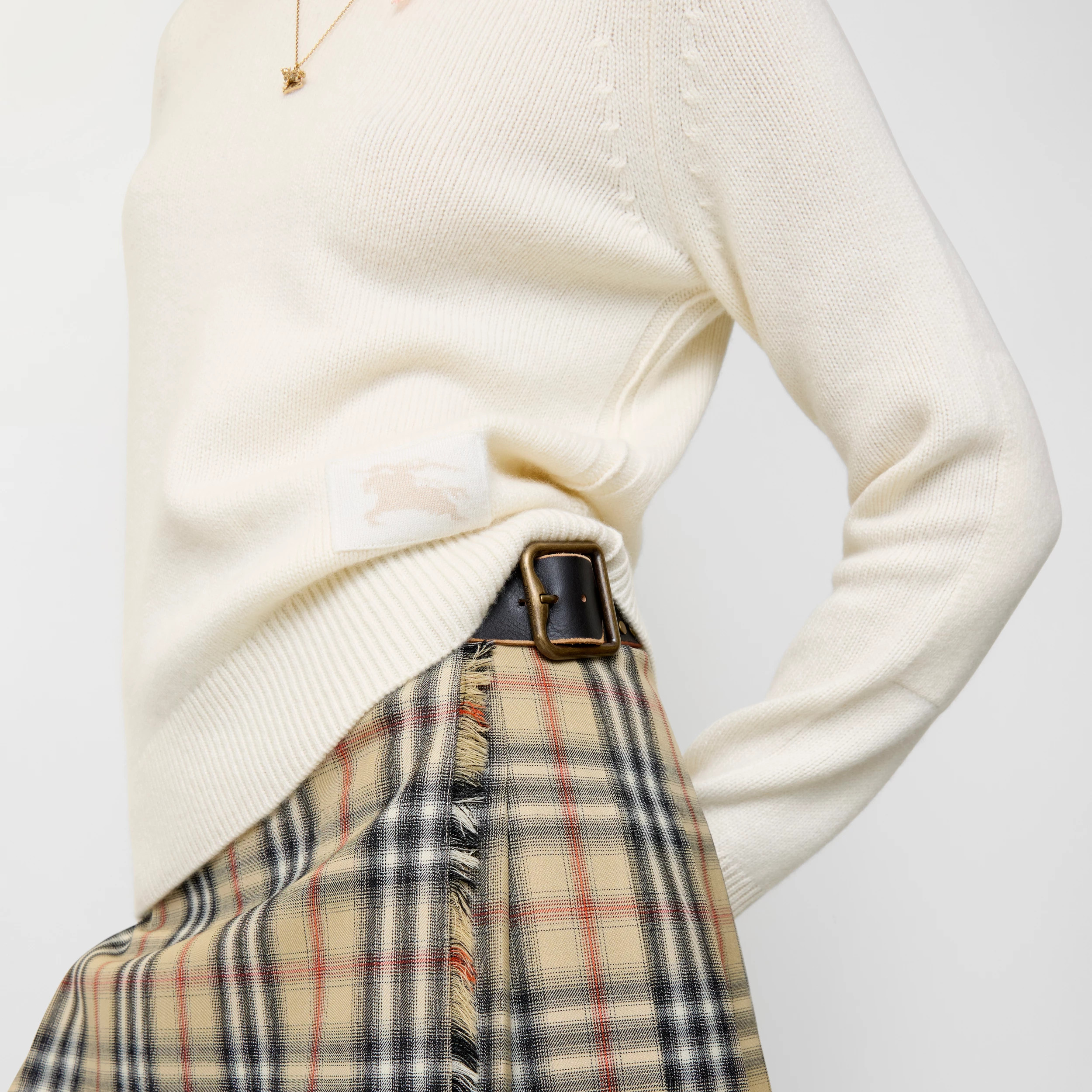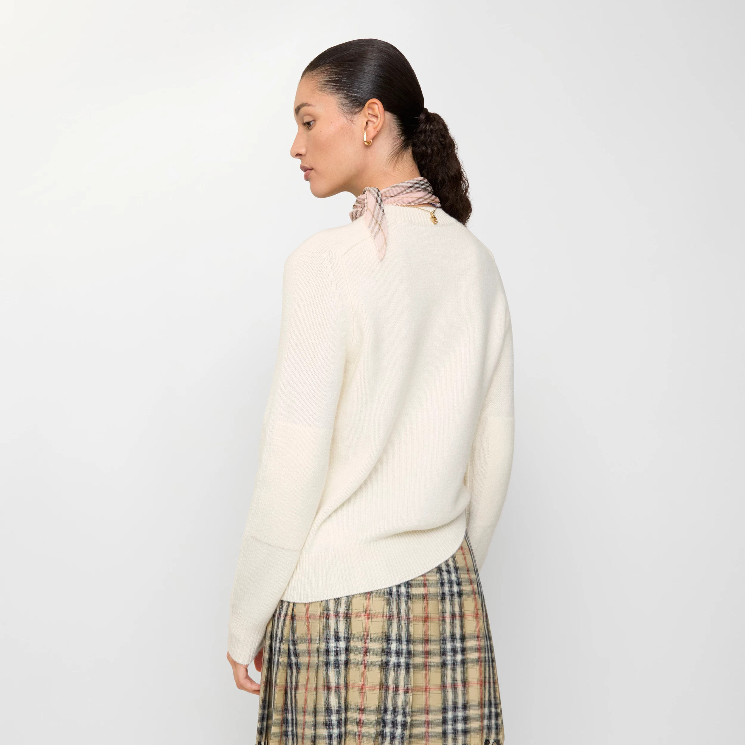 • A sweater made from ultra-soft cashmere with a hint of stretch, cut to a regular fit. The crew-neck style is knitted with tonal elbow patches, chain-stitching at the shoulders and a contrasting Equestrian Knight Design.