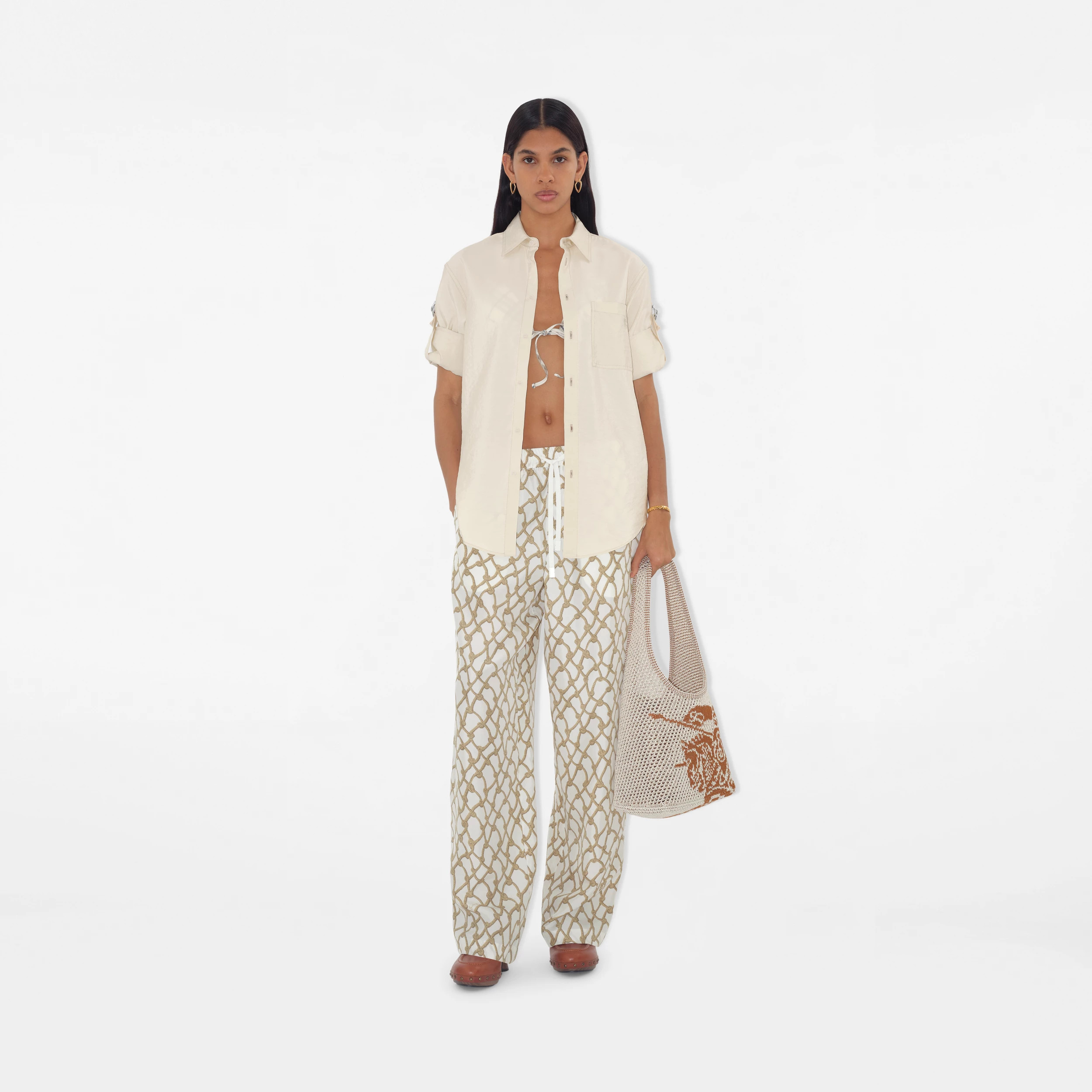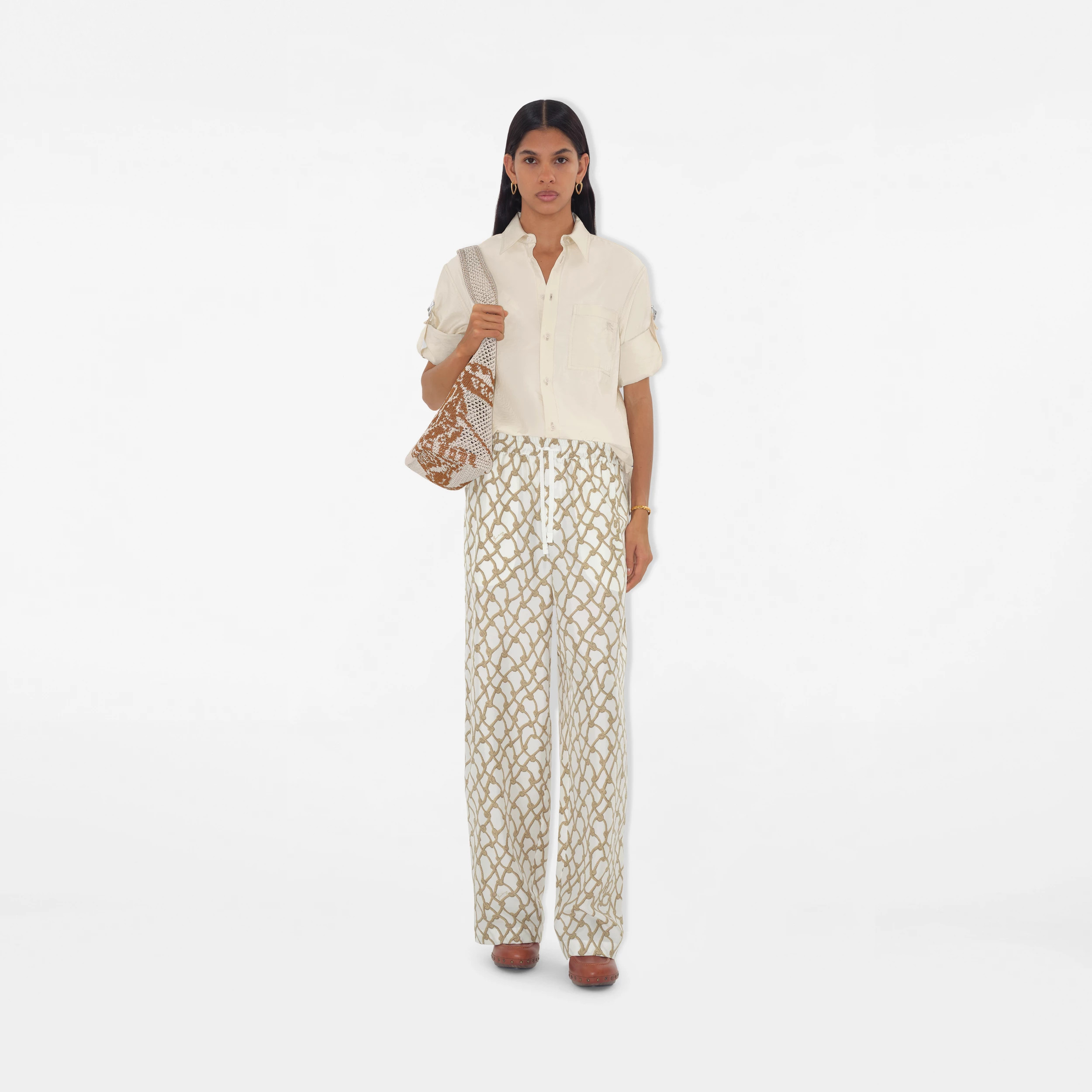 • A pair of trousers made from Italian-woven silk poplin, printed with a design inspired by nautical knots. The drawcord style is cut to a relaxed fit.