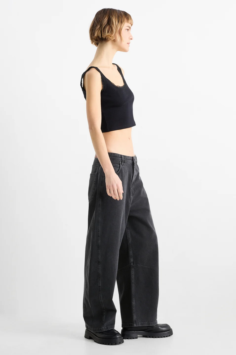 Balloon jeans made of slightly stretchy denim with washed effects.