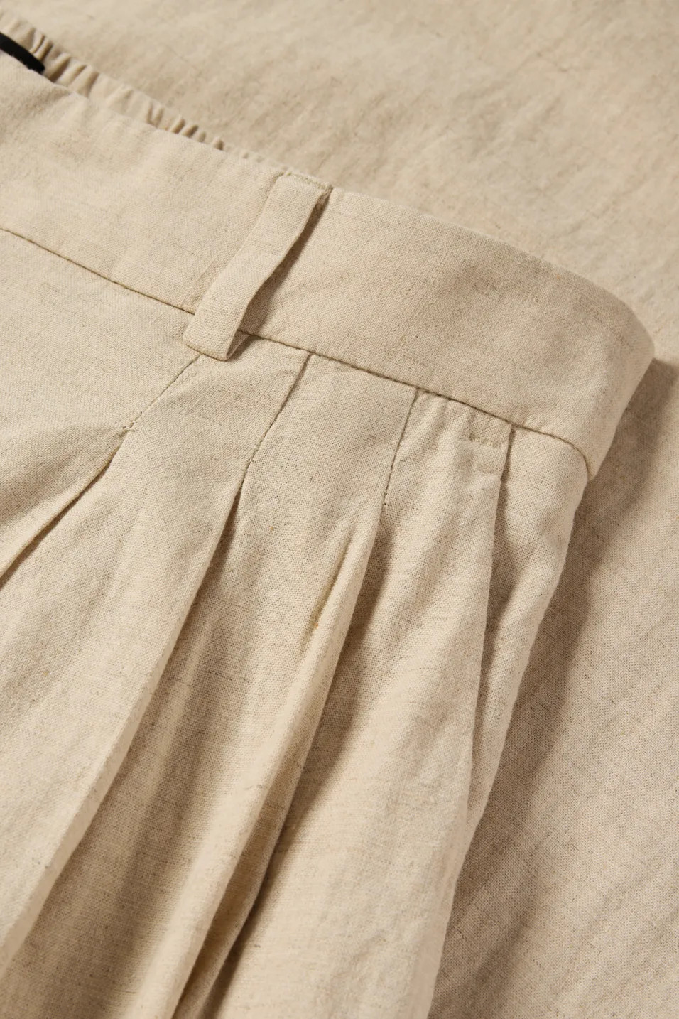 Fabric trousers in a lightweight linen blend. Elastic insert at the back waistband and two side and back pockets.