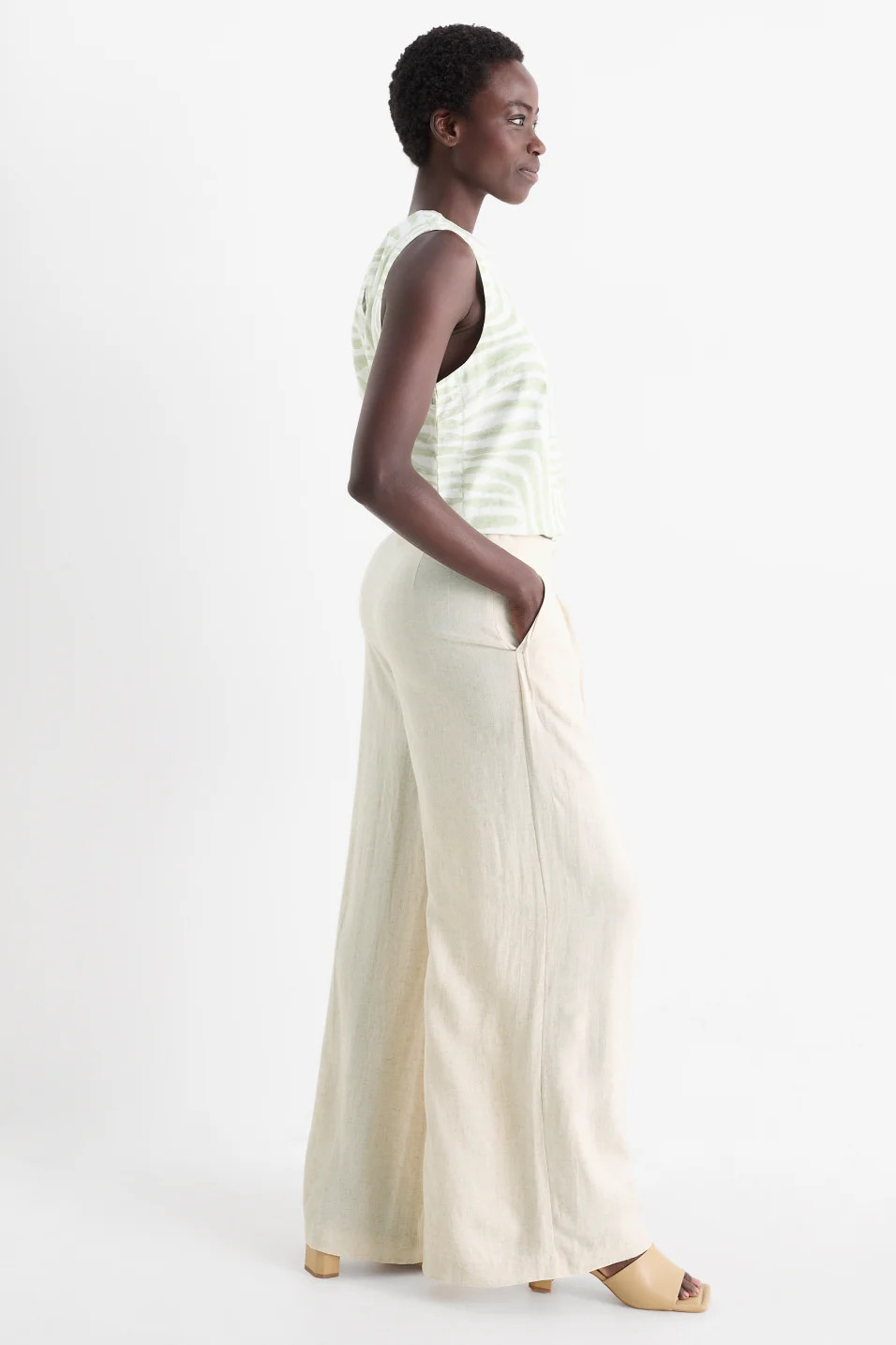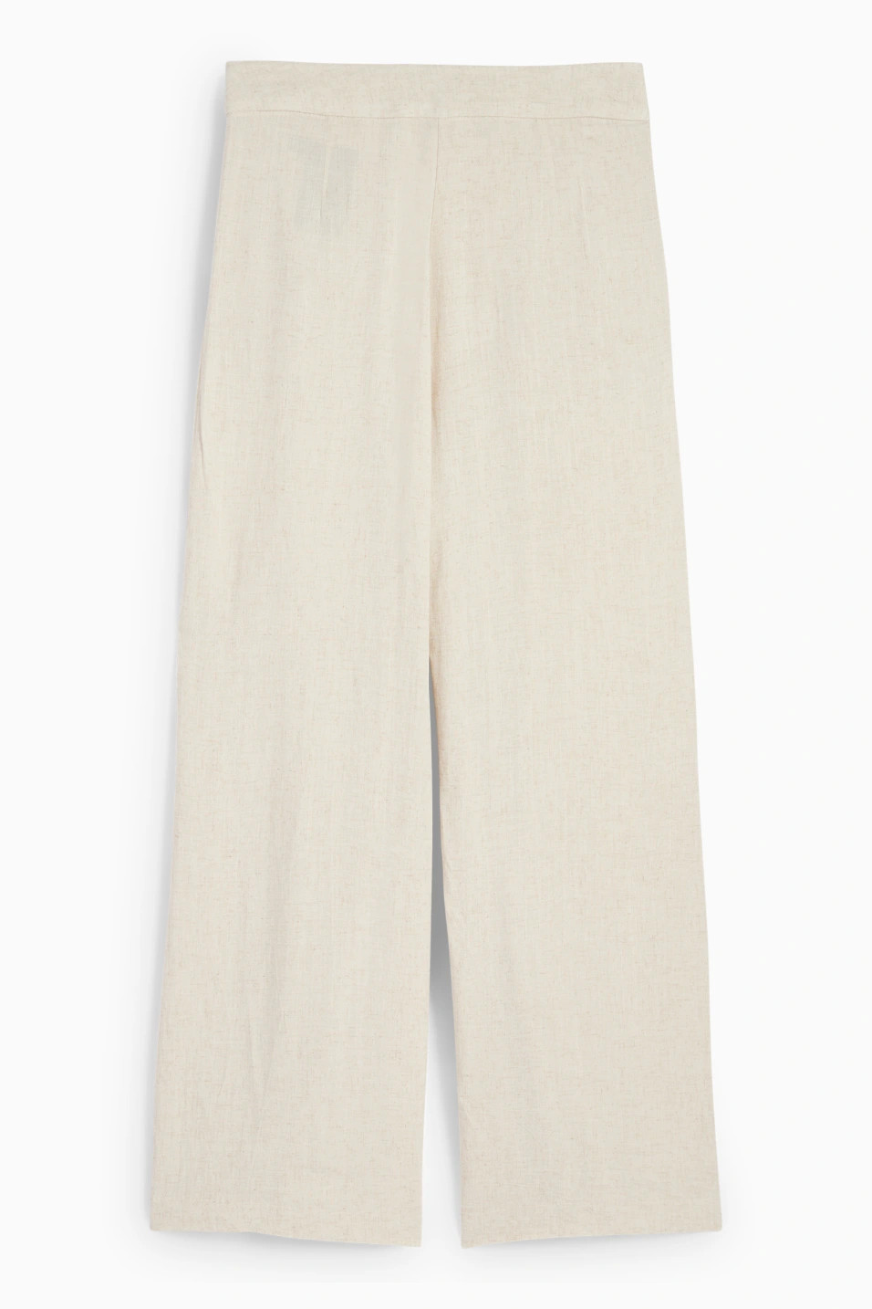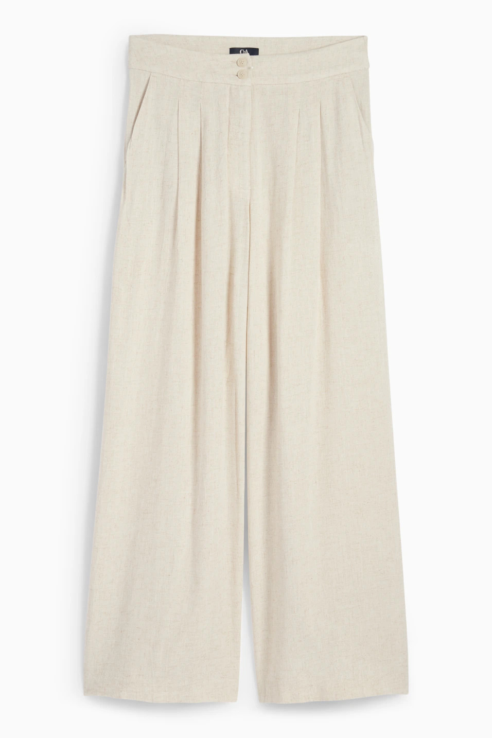 Business trousers made of lightweight woven fabric with a linen blend. Pleats and two side pockets.