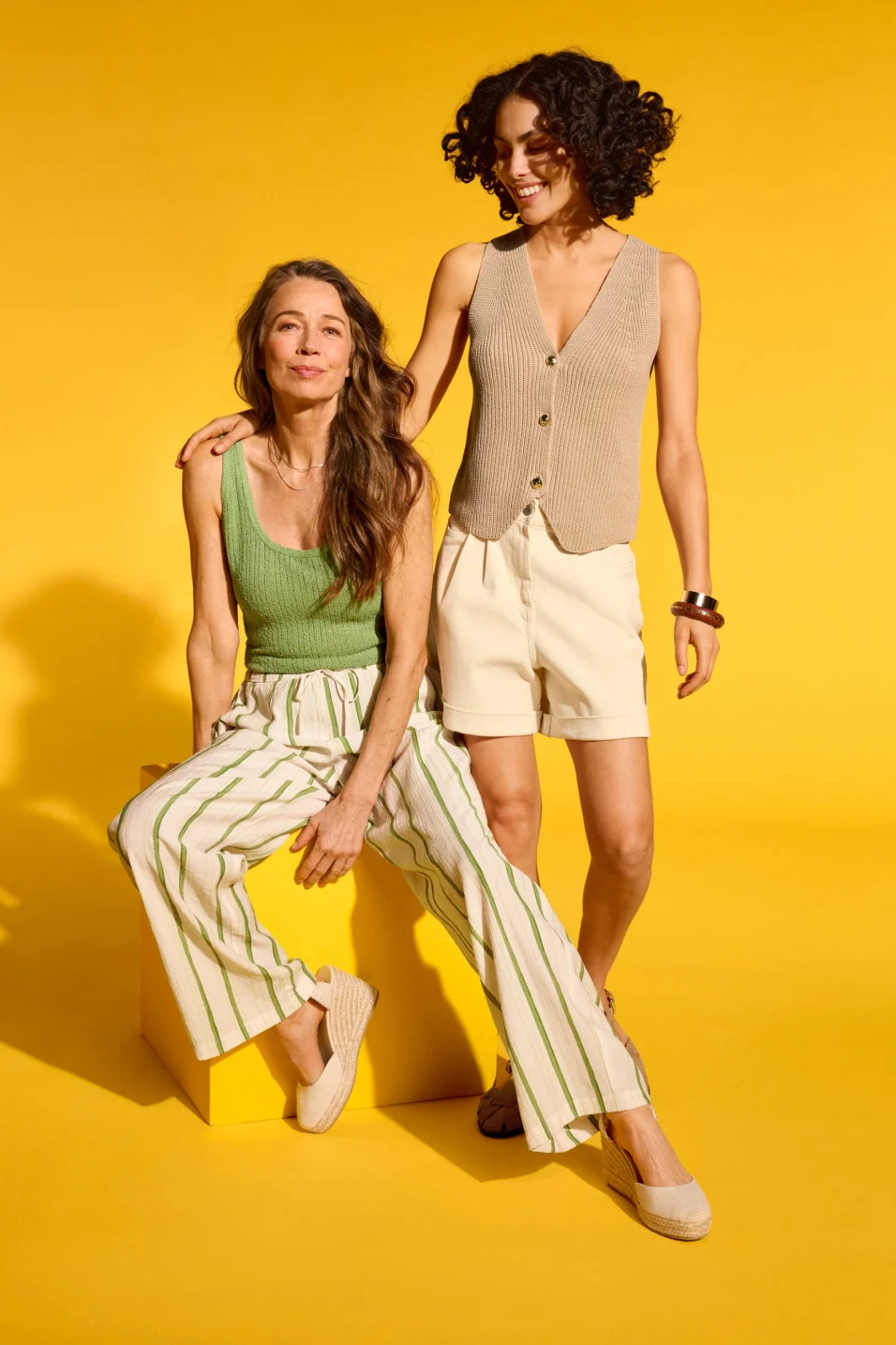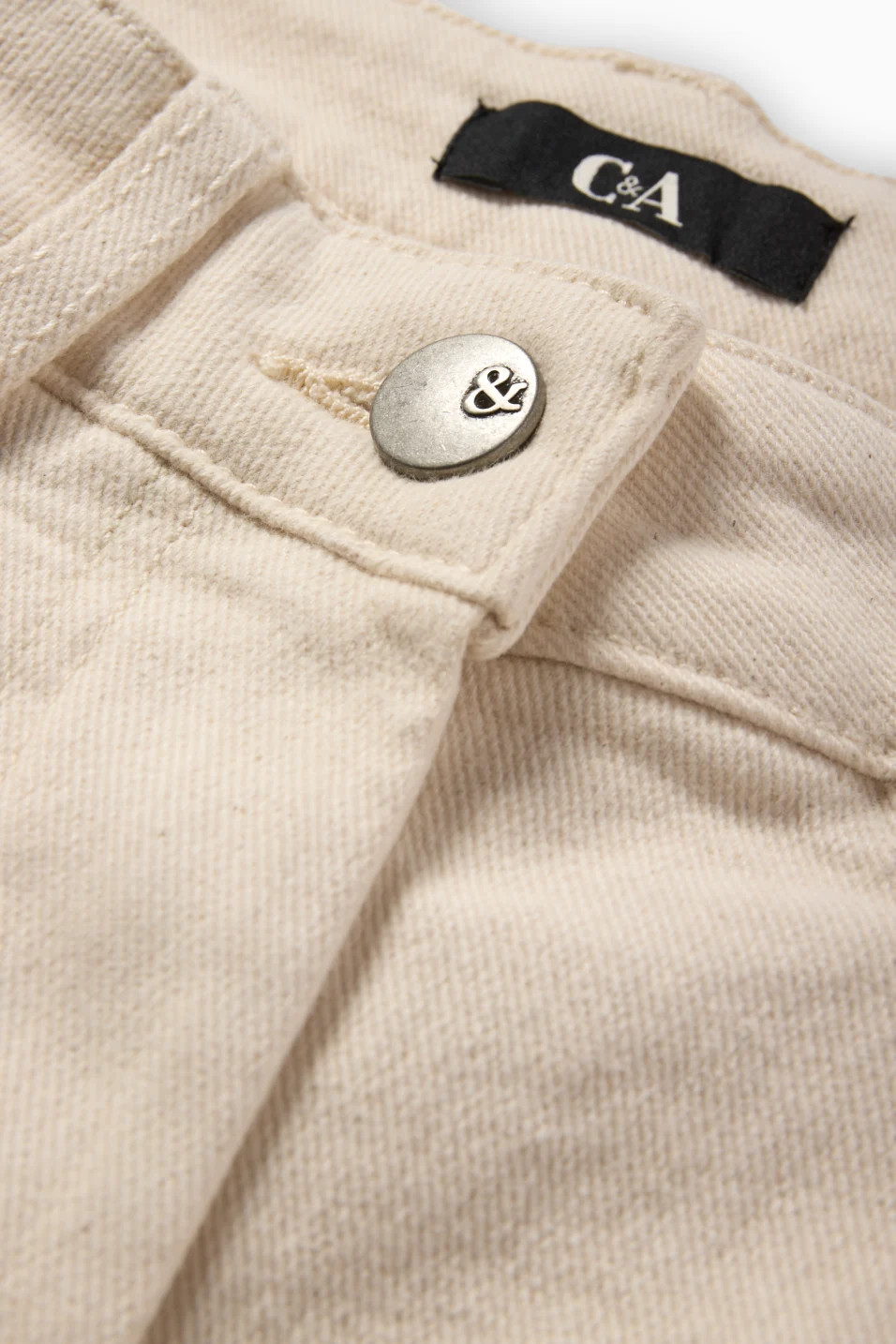 Denim shorts made of slightly stretchy denim with an even wash and fixed hem turn-ups.