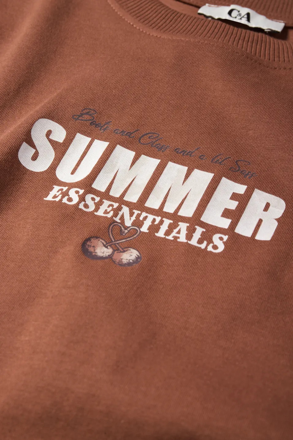 T-shirt made of lightweight, soft jersey with lettering and a small cherry motif. Dropped shoulders.