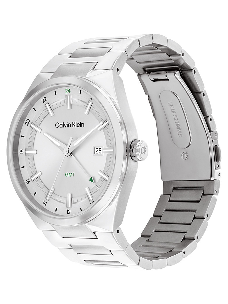 Calvin Klein GMT watch in stainless steel with a grey dial