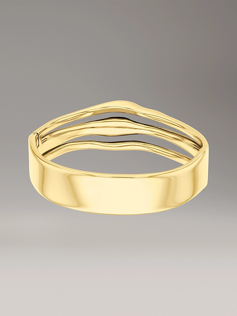 Sculptural, layered form made of polished stainless steel. This bangle has a hinged closure and is engraved with the Calvin Klein logo.