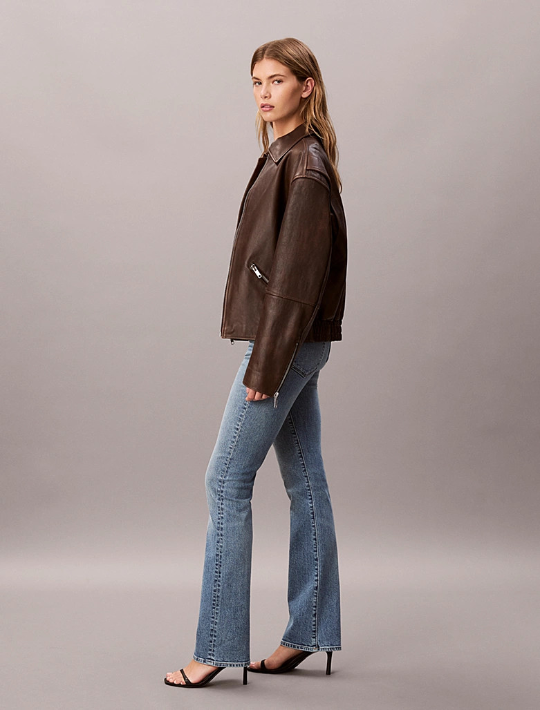 A denim classic with a new look: bootcut jeans, which sit above the waist and feature a skinny leg and flared hem to visually lengthen the leg.