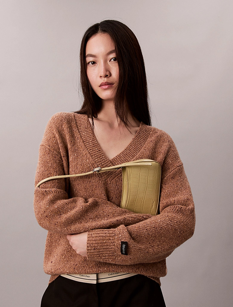 • Faceted Calvin Klein monogram metal elements on the front