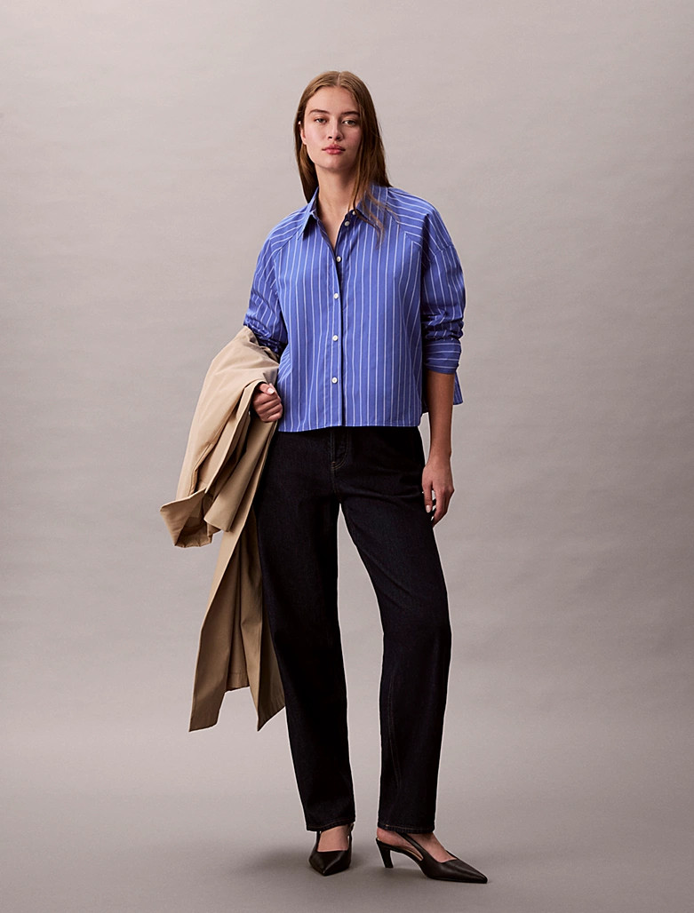 Calvin Klein Striped cropped button-down shirt with a boxy fit