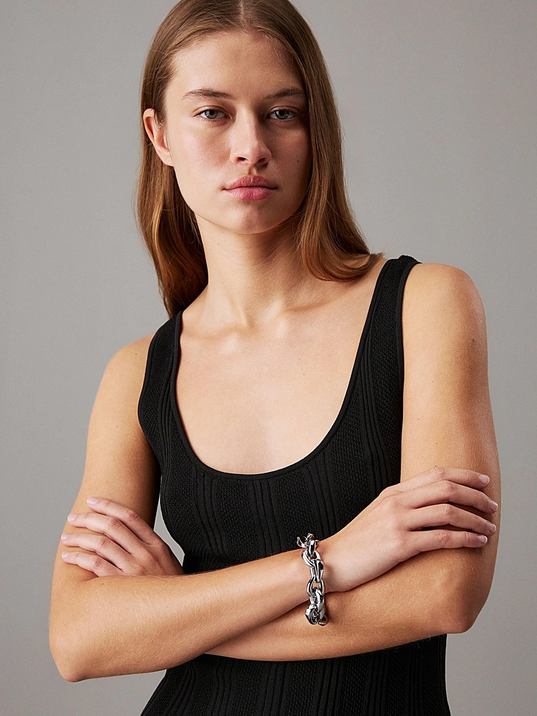 Organic shapes, powerful impact. The CK Statement Links collection features striking, sculptural jewelry designs that emphasize the body's natural curves.