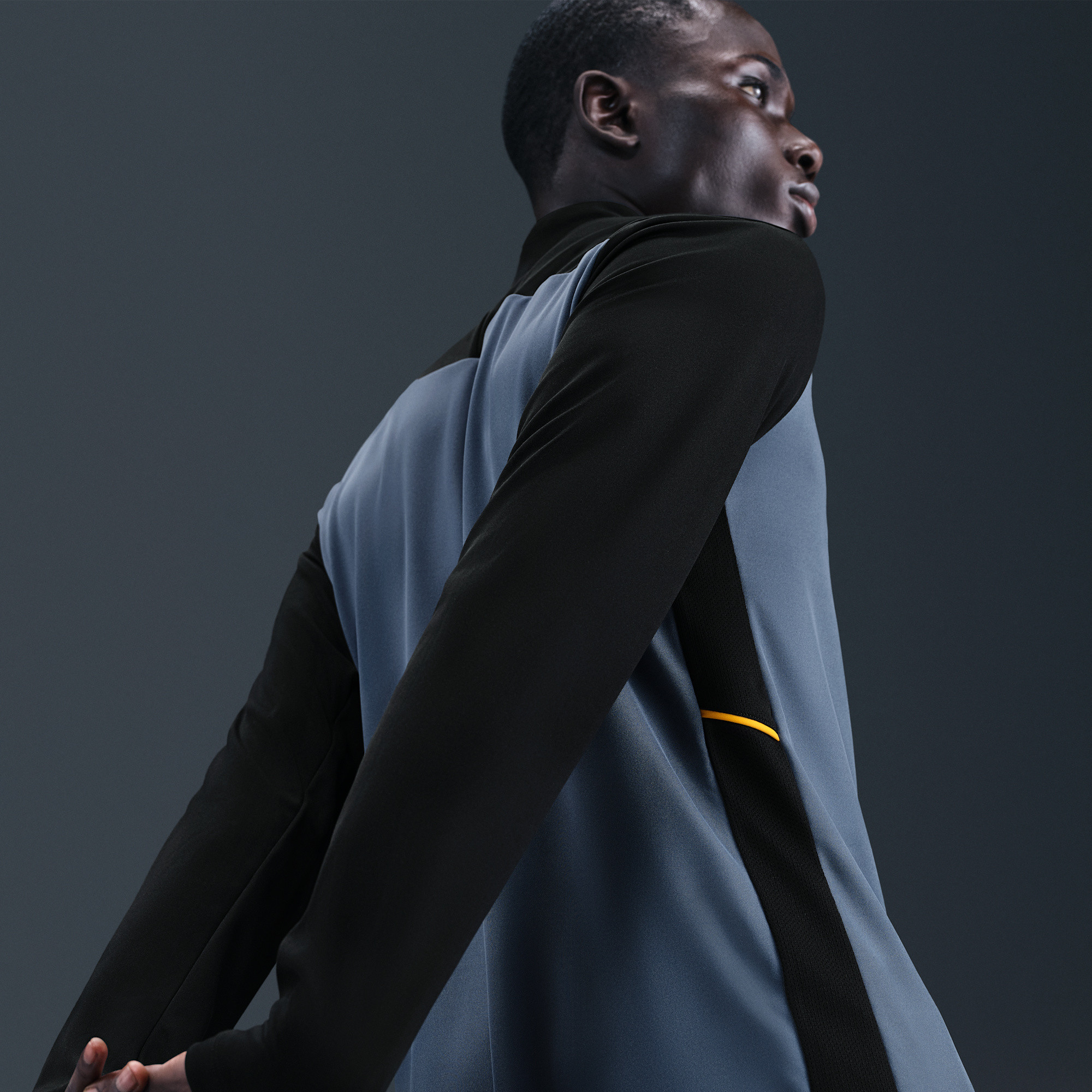 The top features advanced sweat-wicking Dri-FIT technology, effectively drawing moisture away from your skin to keep you dry. Its streamlined, slim fit minimizes bulk, providing a distraction-free experience, while the convenient quarter-zip design offers adjustable ventilation. This combination of features empowers you to elevate your intensity and speed in every drill and training match, supporting peak performance without compromise.