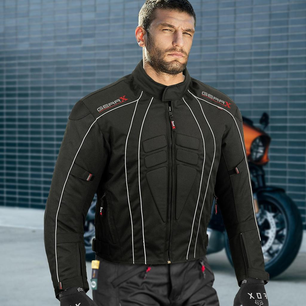 600D CORDURA CONSTRUCTION, WATERPROOF AND WINDPROOF CE APPROVED REMOVABLE ARMOURS at ELBOWS & SHOULDERS.REMOVABLE ARMOUR BACK PLATE 2 FRONT POCKETS & 1 INNER POCKET REMOVABLE THERMAL LINING COMFORTABLE PADDED COLLAR HEAVY DUTY ZIPPER AT BOTTOM TO ATTACH TROUSERS REFLECTIVE PIPING FOR ENHANCED ROAD VISIBILITY Adjustment FASTENERS AND ZIPPER ACROSS CUFFS ALL SEEMS ARE HEAT MOULDED SEALED TO MAKE IT WATERPROOF