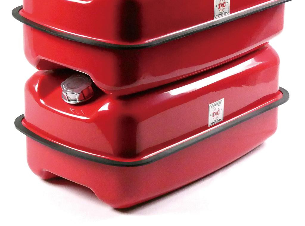 Capacity: 5l Fire service law compliant product khk/un Material: Galvanized steel plate Steel plate thickness: 0.8mm Body size: W244xH114xD408mm Weight: 1.6kg Accessories: Refueling nozzle (with storage bag), contents display sticker