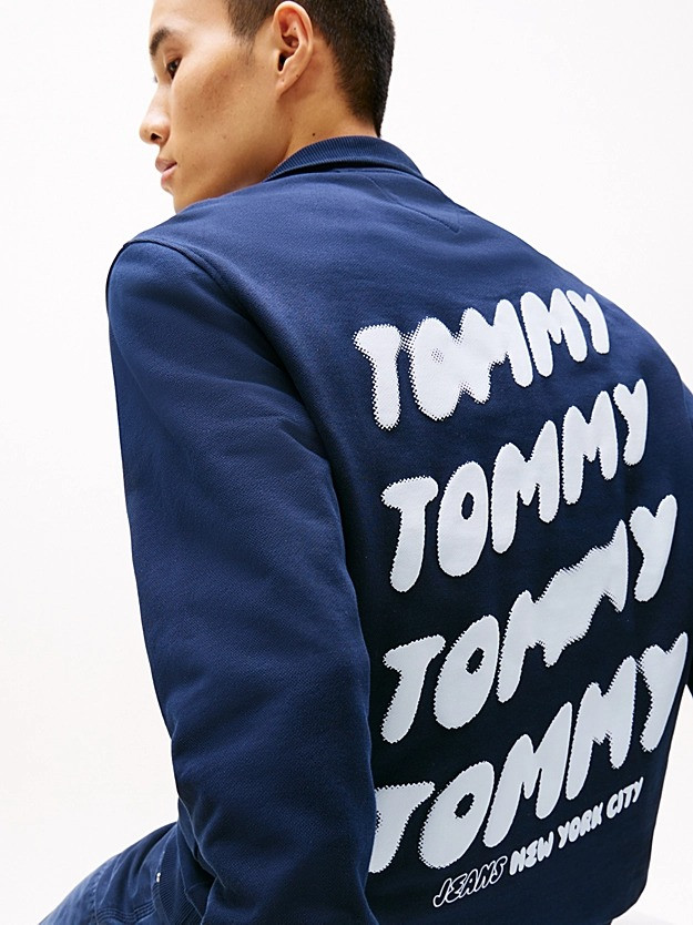 Product Description: This Tommy Jeans sweatshirt is made from pure cotton and features a bold bubble logo graphic on both the chest and the back, radiating retro street-art vibes. Designed with a quarter-zip collar, rib-knit cuffs and hem, and finished with a Tommy Jeans flag patch on the sleeve.