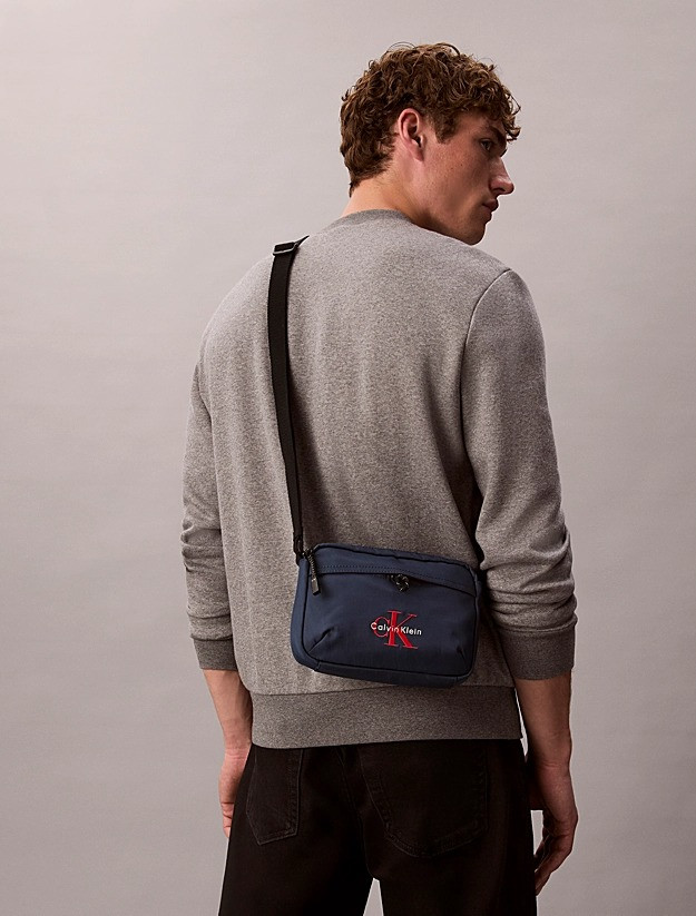 This Calvin Klein men’s camera crossbody bag is made from durable, water-resistant nylon twill. Features an adjustable shoulder strap, hiking-style bungee zip pulls, a front exterior pocket, and an interior slip pocket. Dimensions: height 12.5 cm, length 20 cm, width 5 cm. The front is embroidered with the classic Calvin Klein logo.