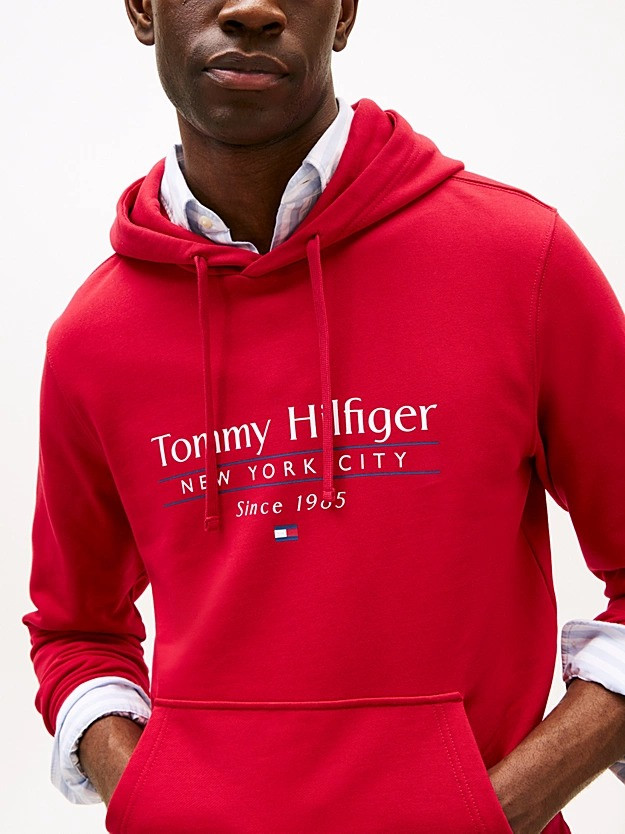 This pure cotton hoodie ensures comfort with its adjustable drawstring hood and rib-knit cuffs and hem. Featuring a kangaroo pocket and Tommy Hilfiger NYC logo on the chest, it blends casual style with iconic branding.