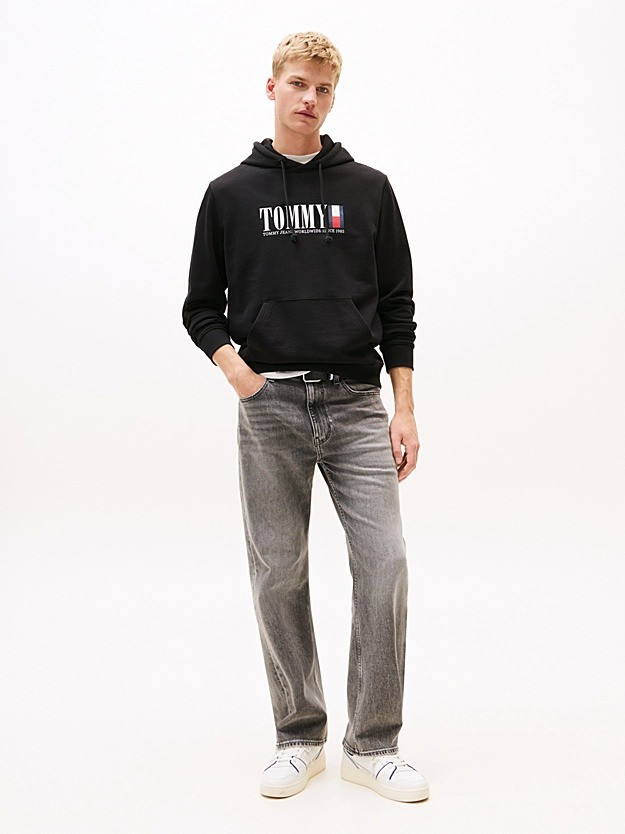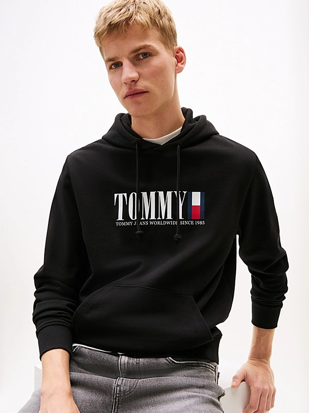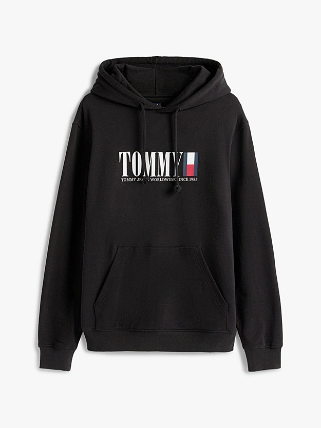 Product Description: This Tommy Jeans hoodie is crafted from pure cotton, offering comfort with a casual heritage vibe. It features an adjustable drawstring hood, a spacious kangaroo pocket, rib-knit cuffs and hem, and a bold Tommy Jeans logo on the chest.
