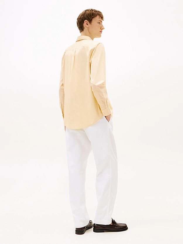 Product Description: This Tommy Hilfiger Regular Fit shirt is made from peached cotton poplin and enhanced with Flex Technology, ensuring excellent freedom of movement all day long. It features a button-down collar, rounded button cuffs, curved hem, and Tommy tape on the inside neckline. Finished with signature Tommy Hilfiger flag embroidery on the chest.