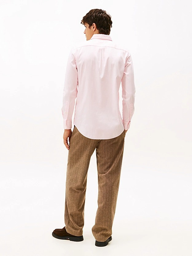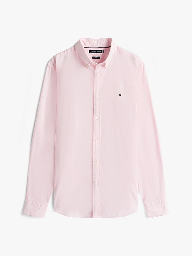 Product Description: This Slim Fit Tommy Hilfiger shirt is made from yarn-dyed cotton dobby fabric with added stretch, giving your look subtle texture and all-day comfort. It features a button-down collar, rounded button cuffs, and is finished with the signature Tommy Hilfiger flag embroidery on the chest.