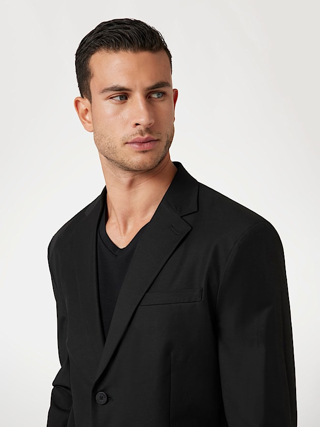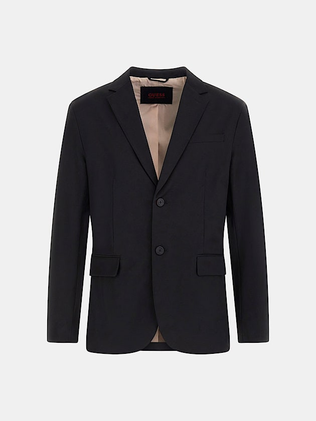 A lightweight and versatile technical cotton stretch blazer by GUESS. Designed with classic lapels, a single-breasted button closure, and a standard silhouette. The stretch fabric ensures comfort and flexibility, making it perfect for both business and casual looks.