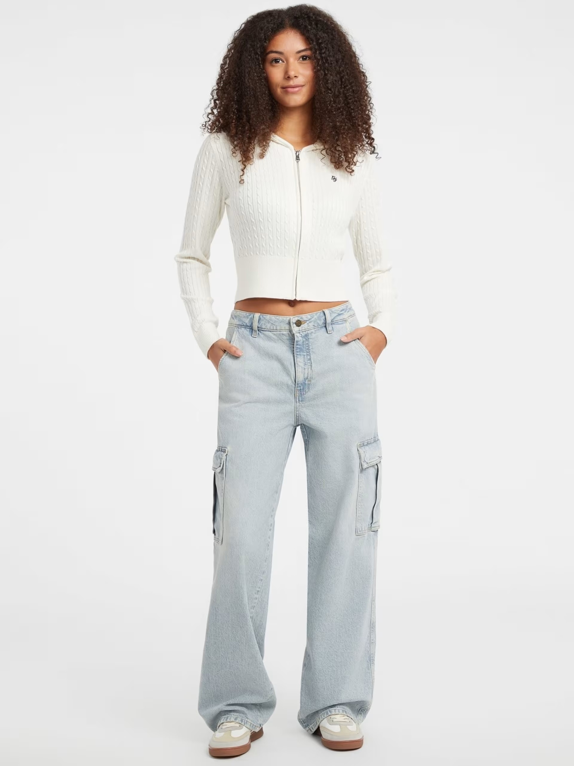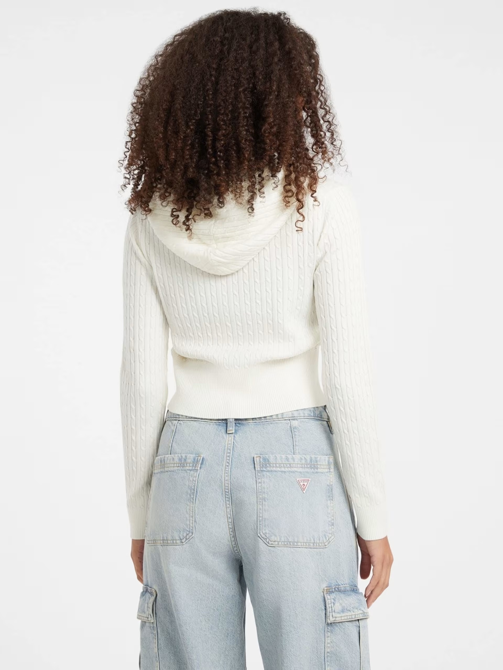 Urban warmth with laid-back ease. This wool blend cardigan offers a regular fit with long sleeves and a hood for a casual edge. Easy zipper fastening. Made with recycled components