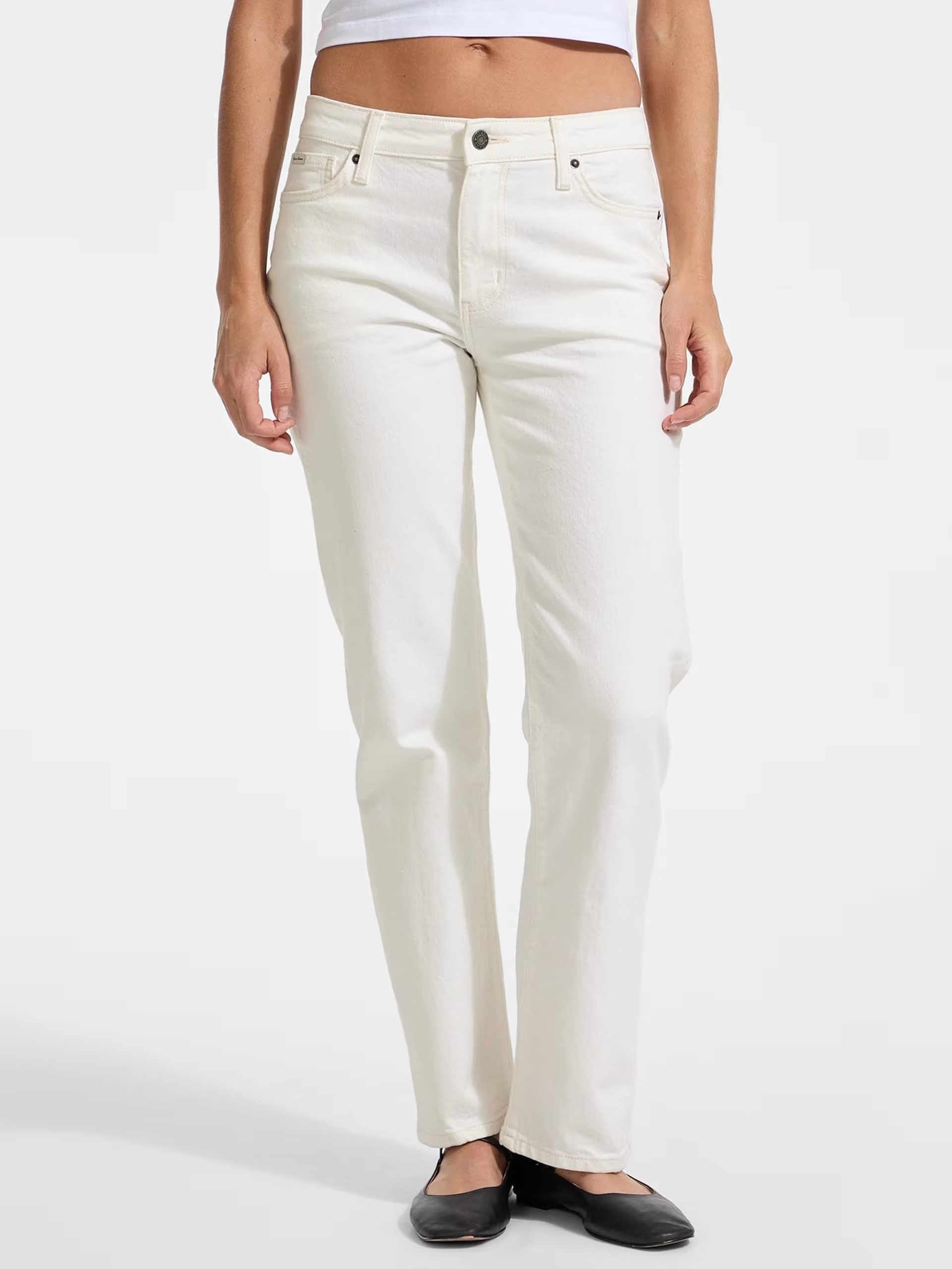 Effortless charm meets timeless detail. Crafted from stretch-denim for comfortable wear, regular fit and straight leg; button and zip closure. This item contains cotton from regenerative agriculture.