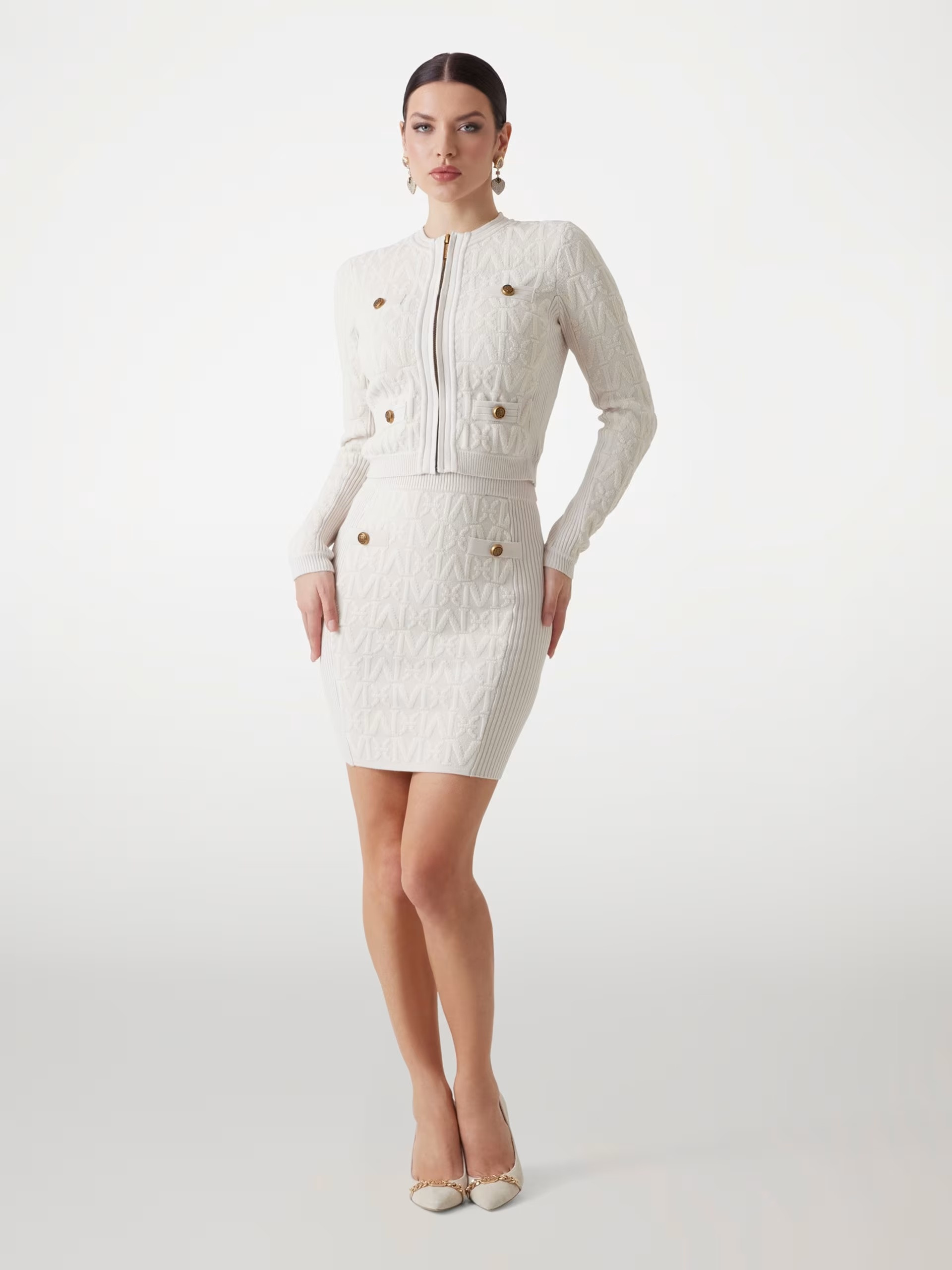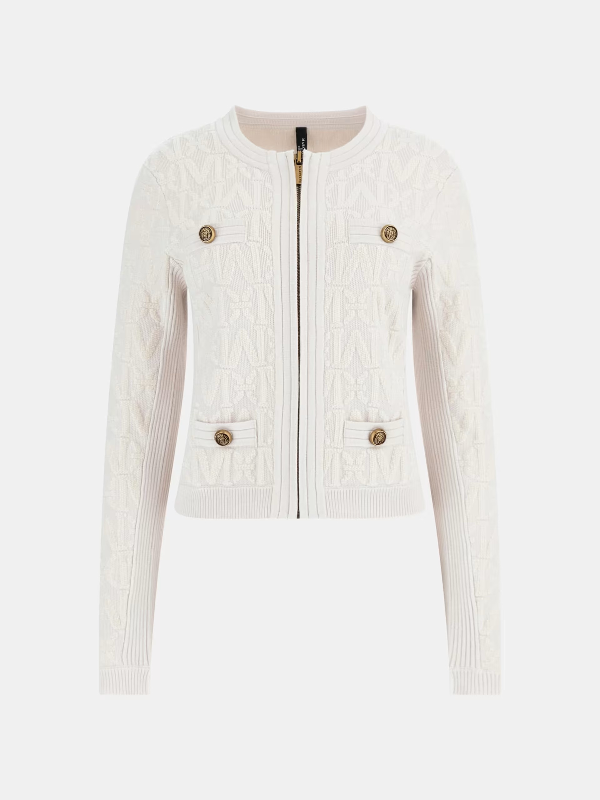 • Long-sleeved, viscose-blend cardigan with all-over chenille monogram.