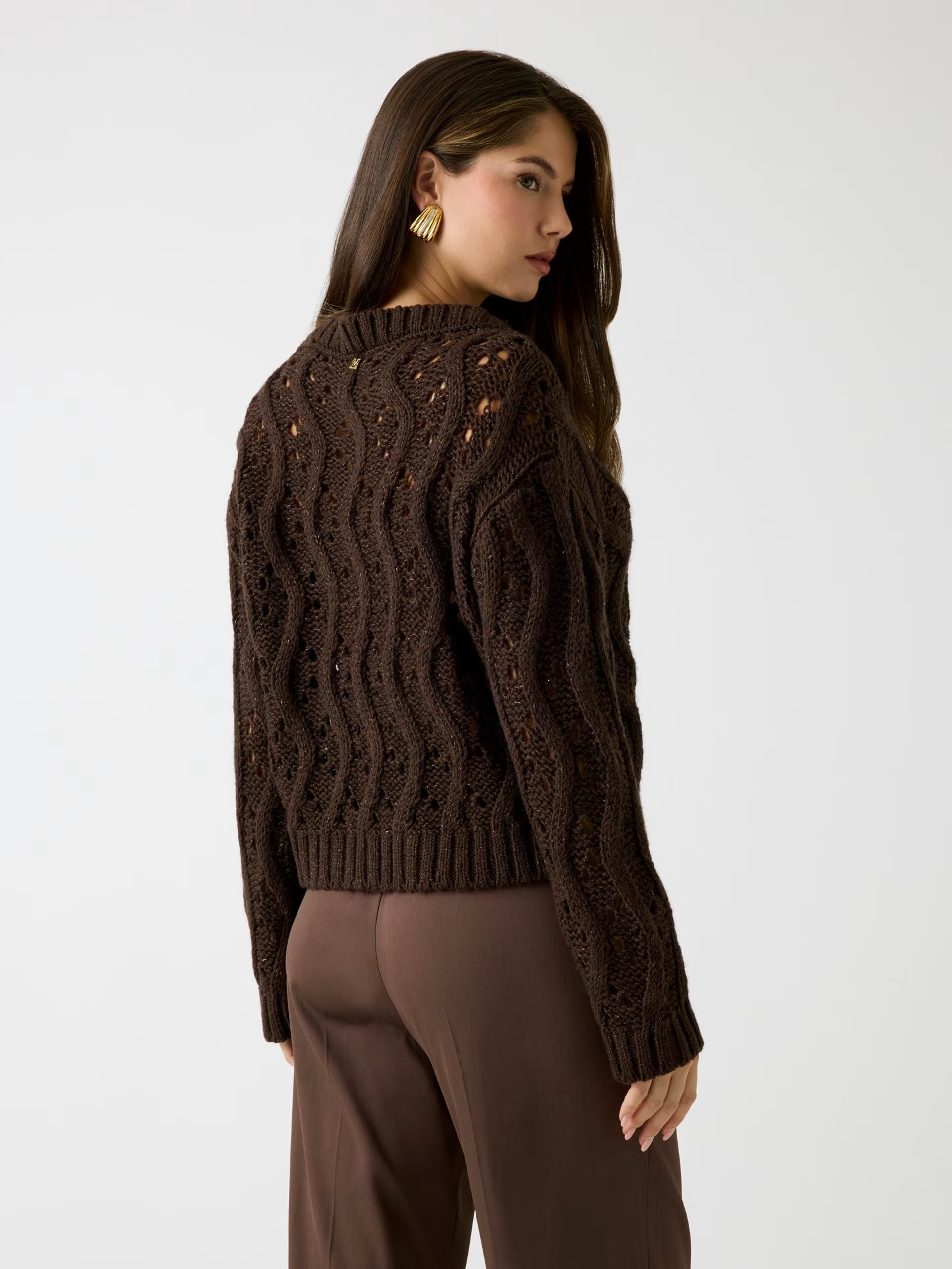 • Wool-blend open-cable-knit sweater.