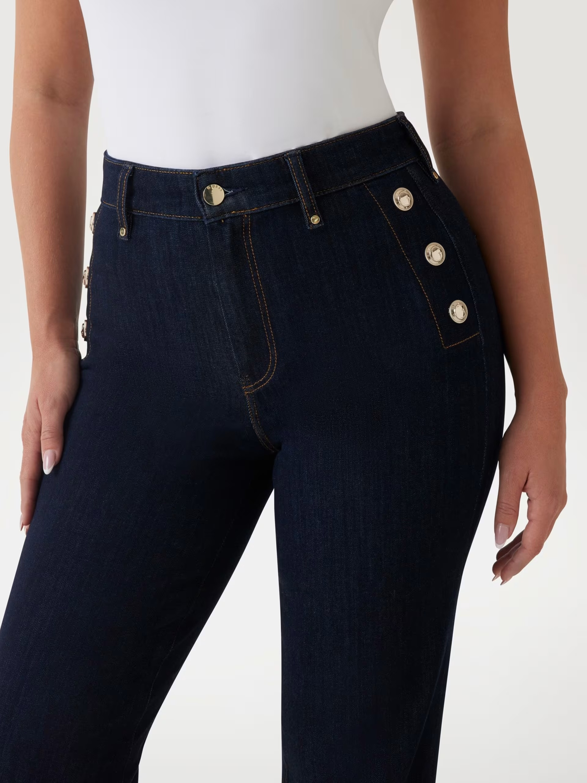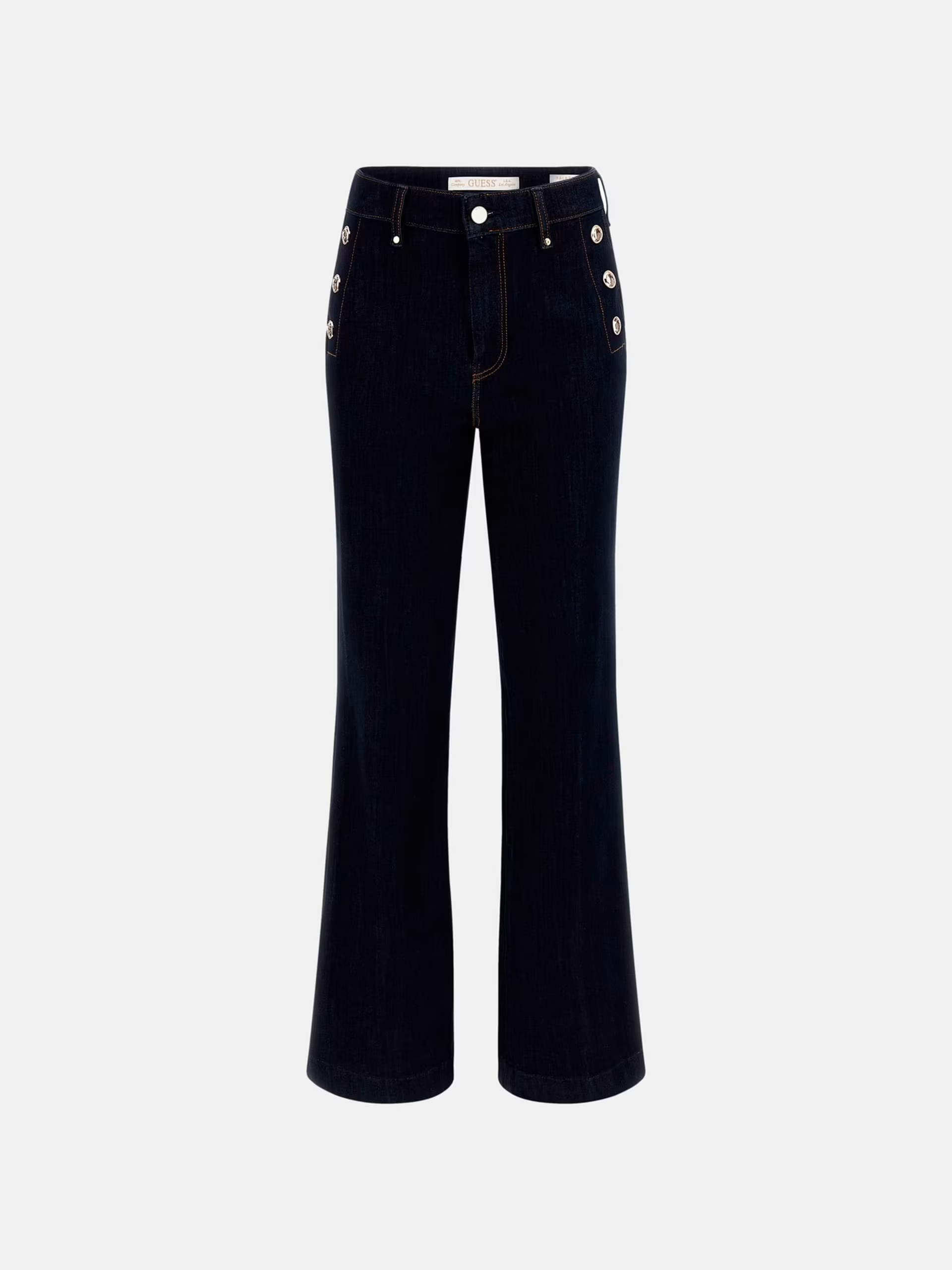 Embrace sophistication with wide-leg chinos made from a cotton blend. The classic mid-rise offers comfort while decorative buttons add a chic touch. Ideal for office days or dinner events, these chinos make a statement.