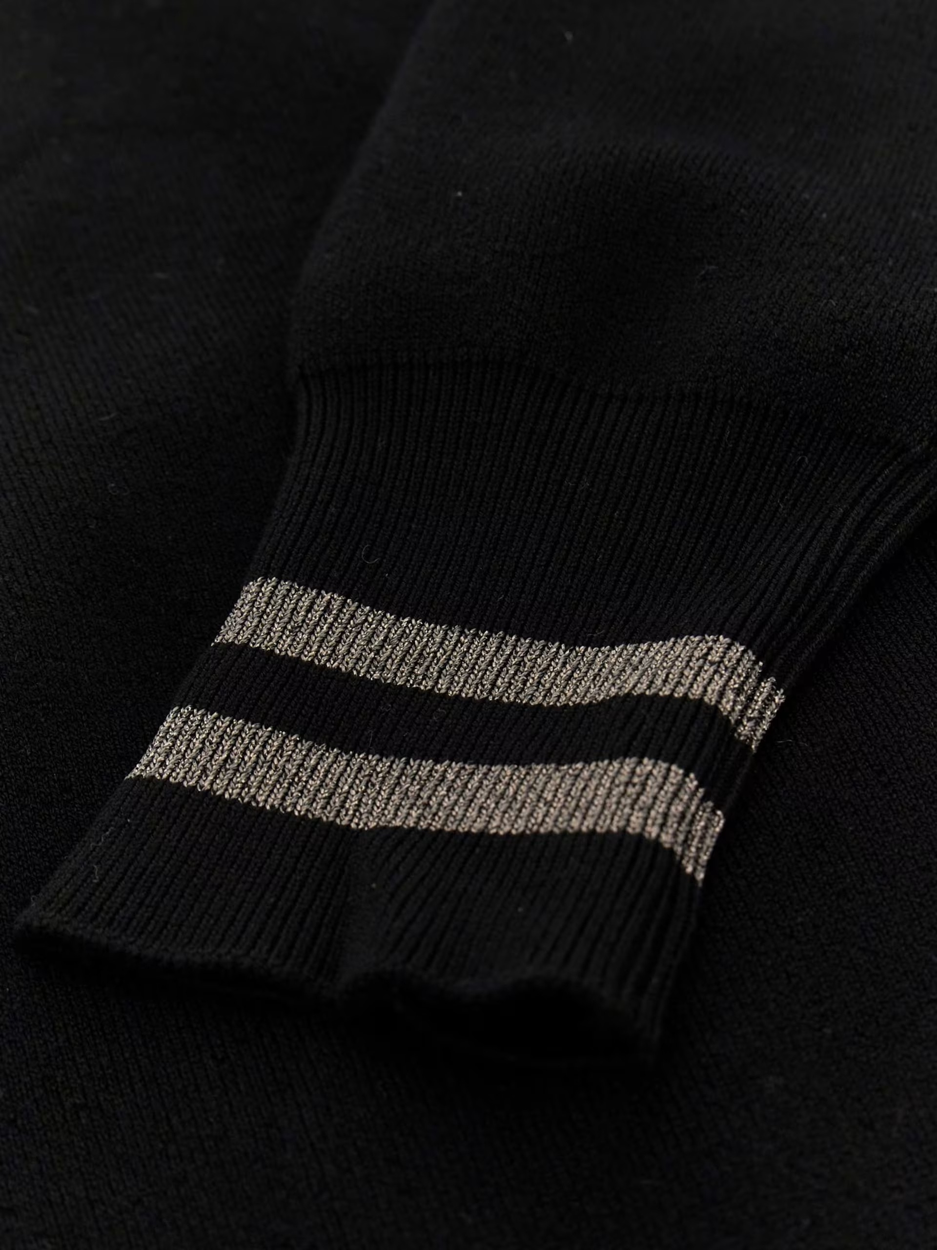 • Striped trim on the cuffs.