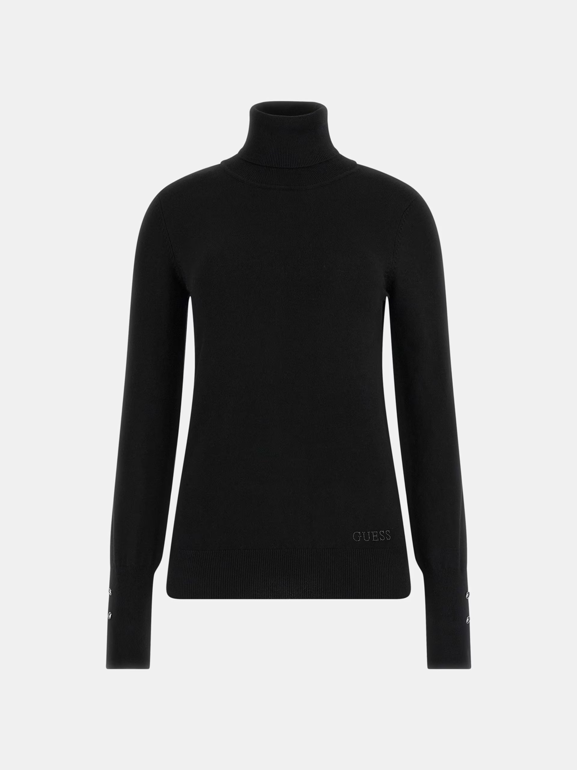 Step into style with this viscose blend sweater. The turtleneck and slim fit create a modern silhouette. Long sleeves with button details add a refined touch. Perfect for urban chic. Made using FSC-certified sustainable wood fibers.