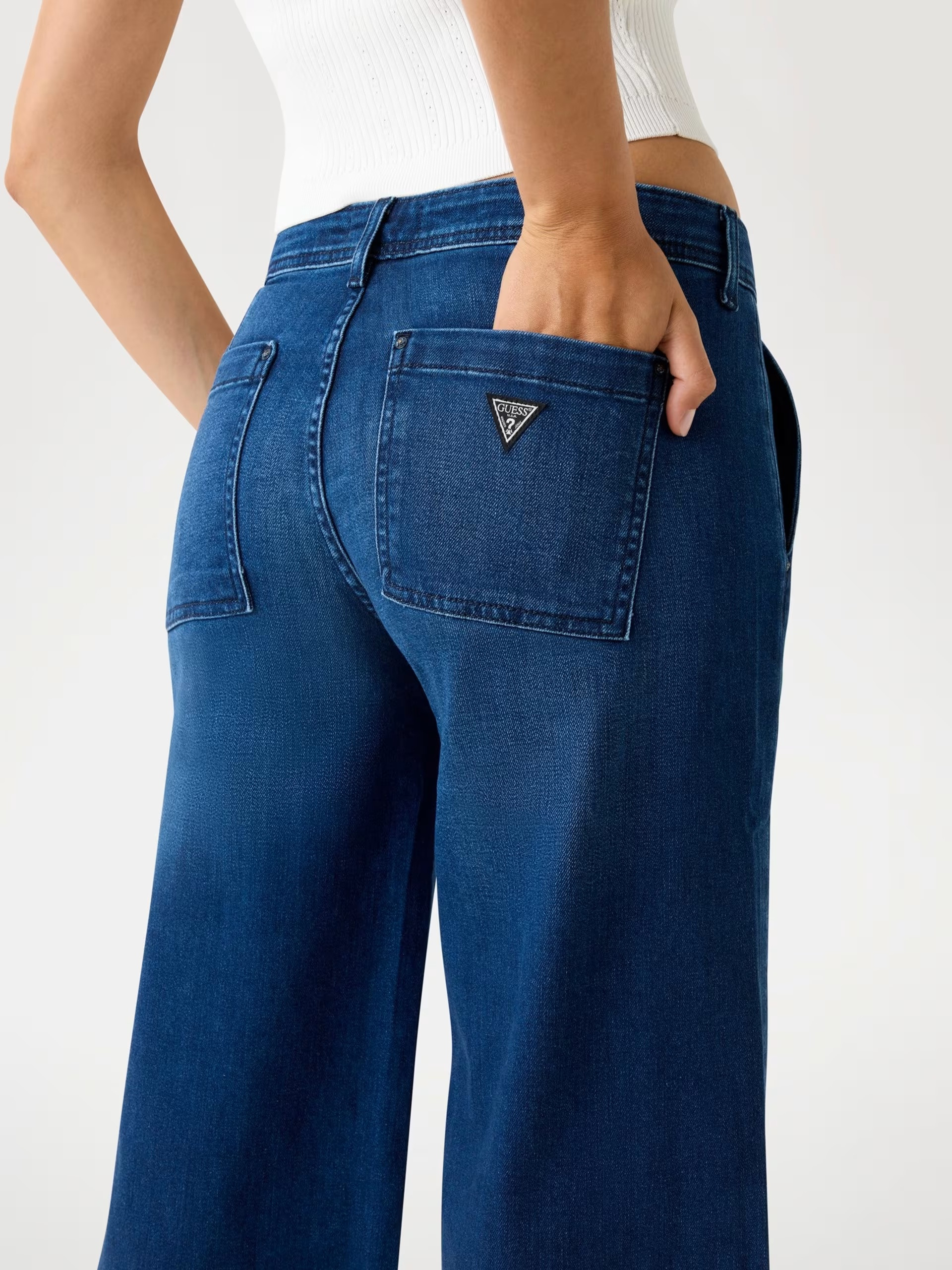 Step into effortless style with our wide-leg stretch jeans, perfect for your daily wear. The five-pocket layout combines utility with fashion-forward design. A comfortable mid-rise with loose legs keeps you relaxed all day. Created from breathable cellulose fiber, they promise a silky touch and cooling effect.
