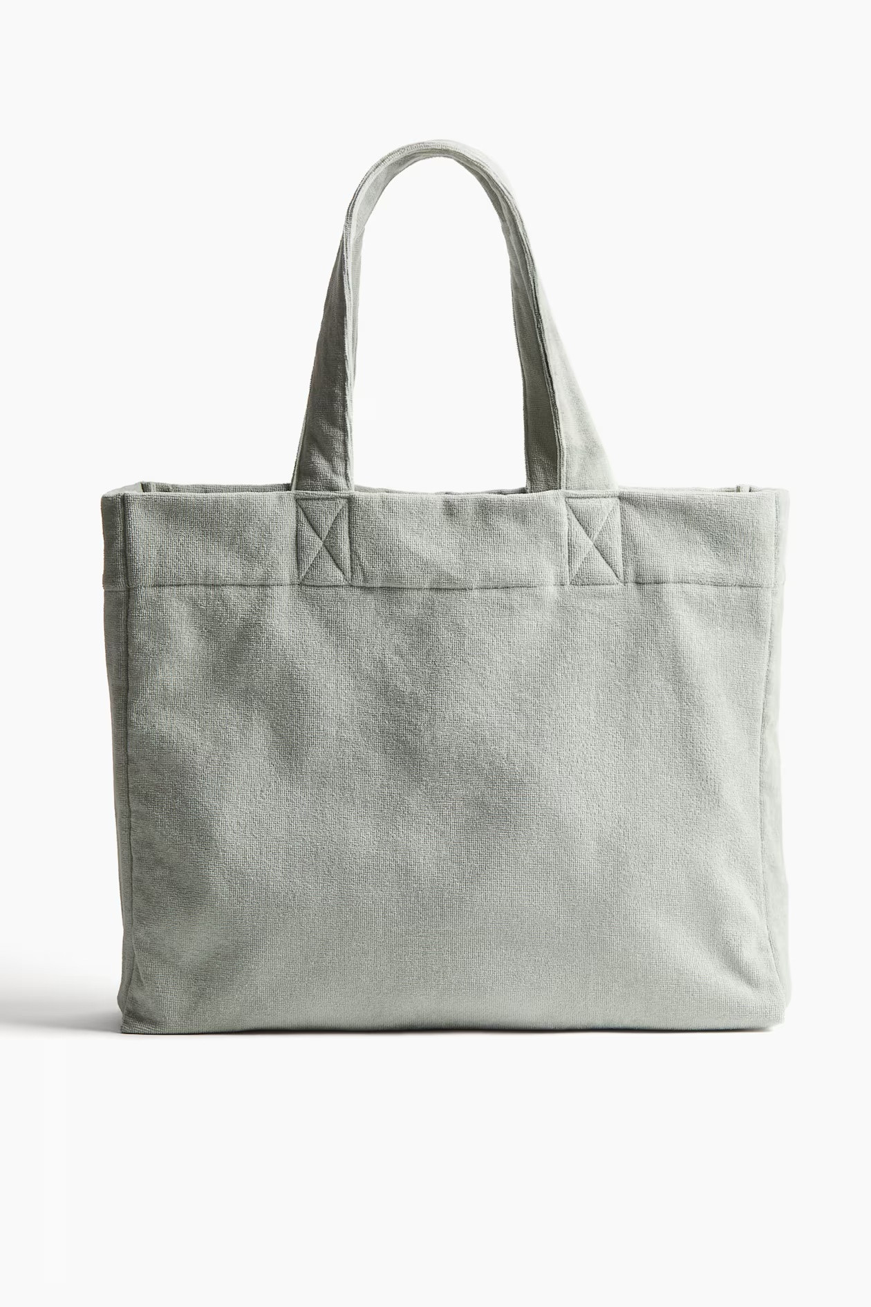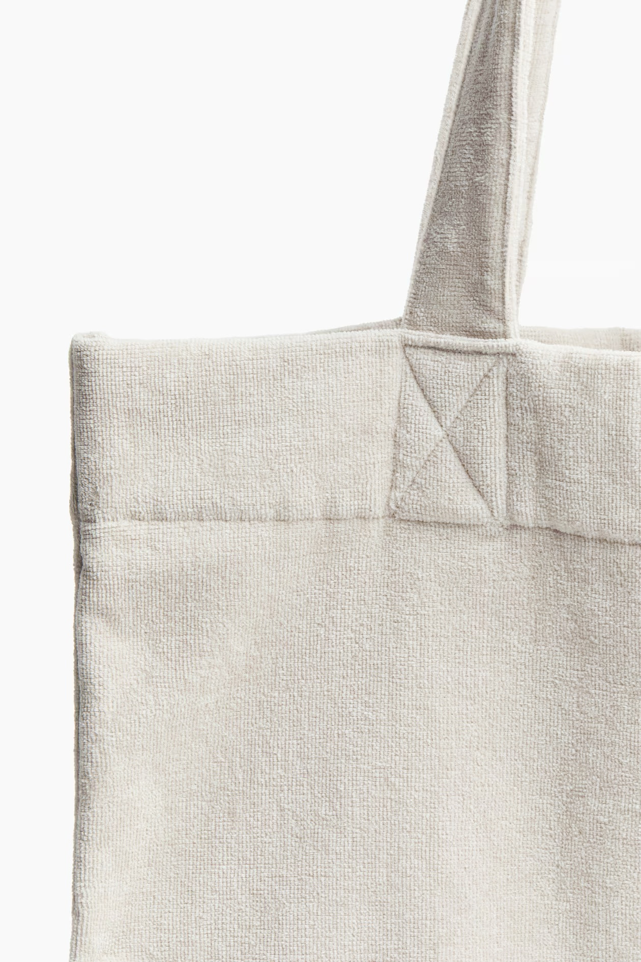 From sandy shores to sun-soaked adventures, carry your essentials effortlessly in this spacious beach bag crafted from soft, absorbent cotton terry. Lined. Depth 12 cm. Height 40 cm. Width 50 cm.