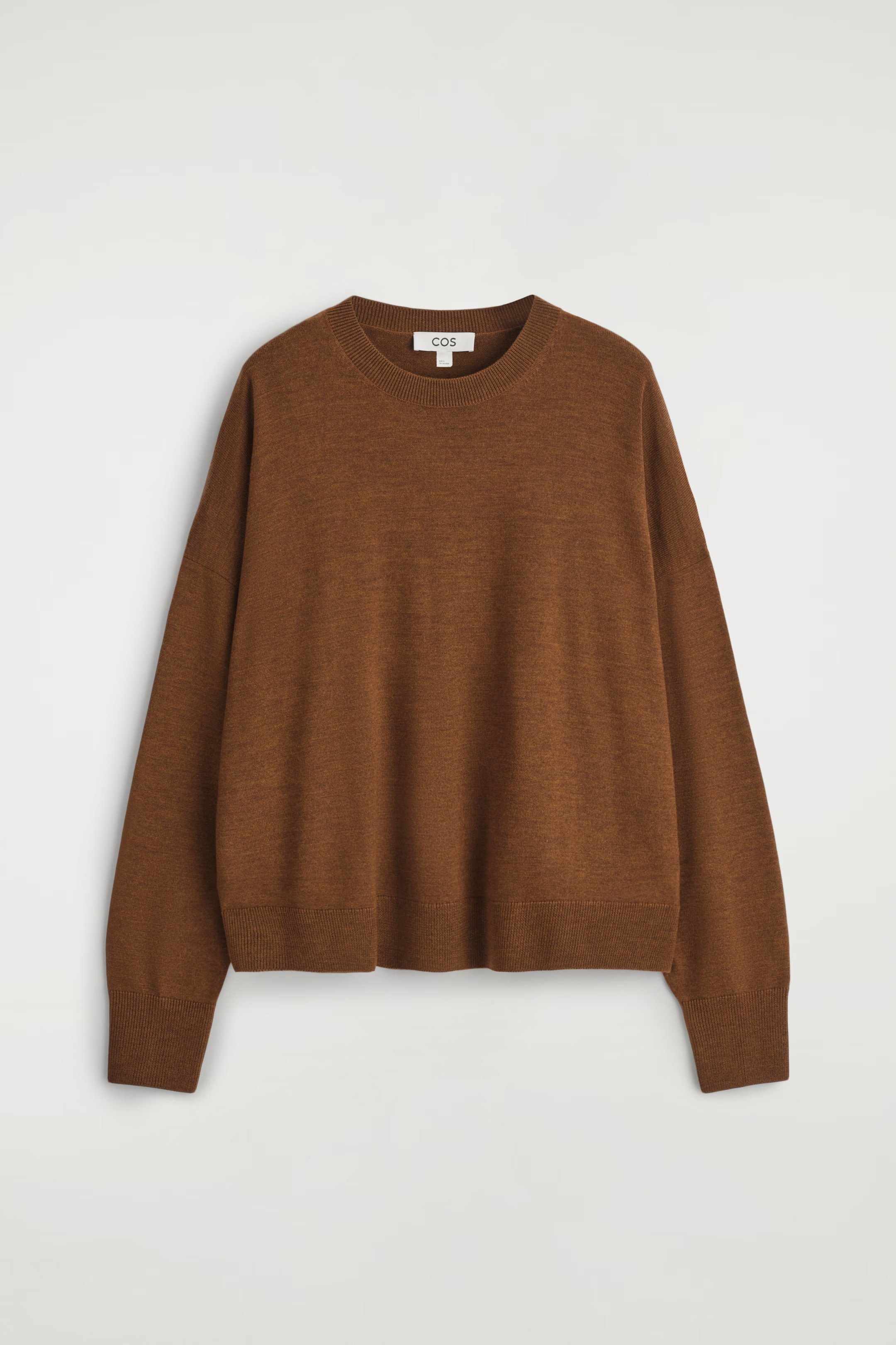 Our classic knitwear serves as an elegant foundation for your wardrobe. This black knit sweater is made from finely knitted, soft, and lightweight merino wool, keeping you cozy and warm even on the coldest days of the year. It features a relaxed silhouette, a ribbed crew neck, and shaped sleeves. This item contains Responsible Wool Standard TE-00047206 (RWS) wool fibers from mills certified to animal welfare and agricultural standards. Outer fabric: 100% merino wool. Details excepted/Machine wash. Back length in size S = 58.5 cm/Model wears size S