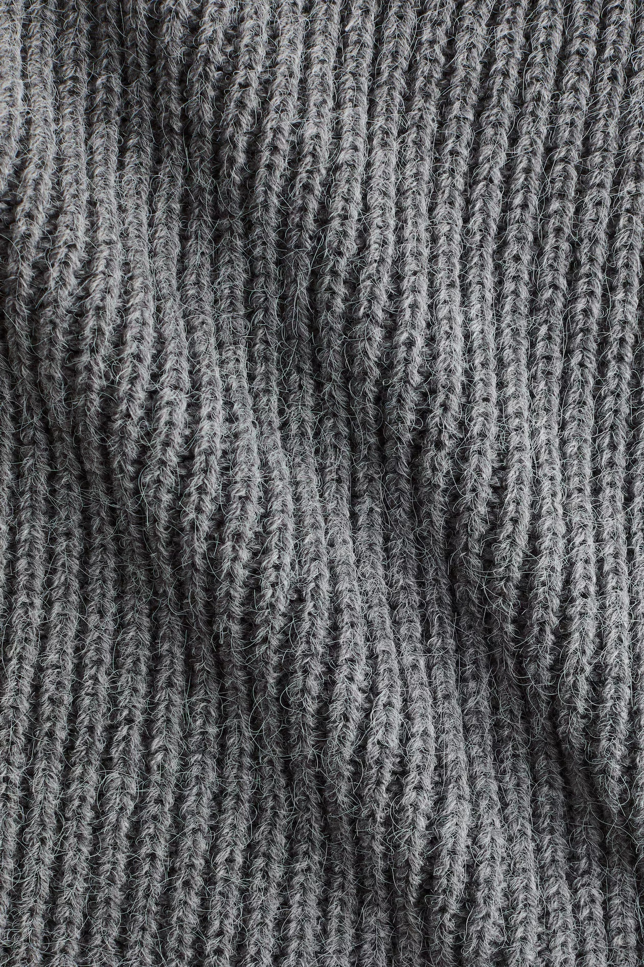 Oversized sweater in soft rib knit with an overlapping front and a deep V-neck. Long, tapered raglan sleeves.