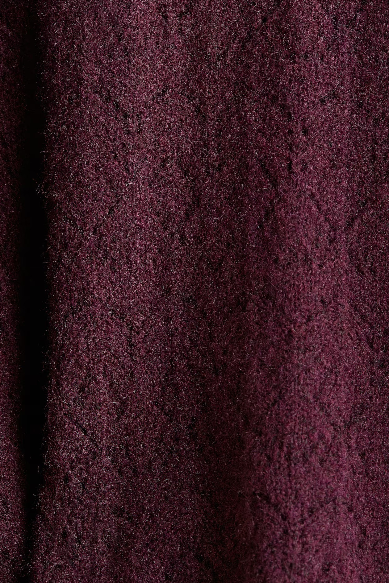 Short, figure-hugging sweater in soft pointelle knit with a scalloped round neckline. Long sleeves with scalloped cuffs and a ribbed flounce trim at the hem.