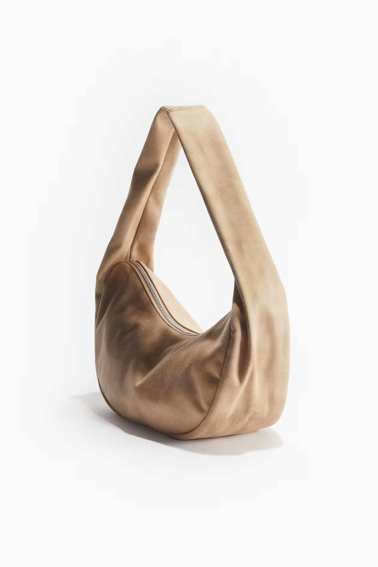 Small shoulder bag with a zip at the top and a wide shoulder strap. Taffeta lining. Height 14 cm. Width 29 cm.