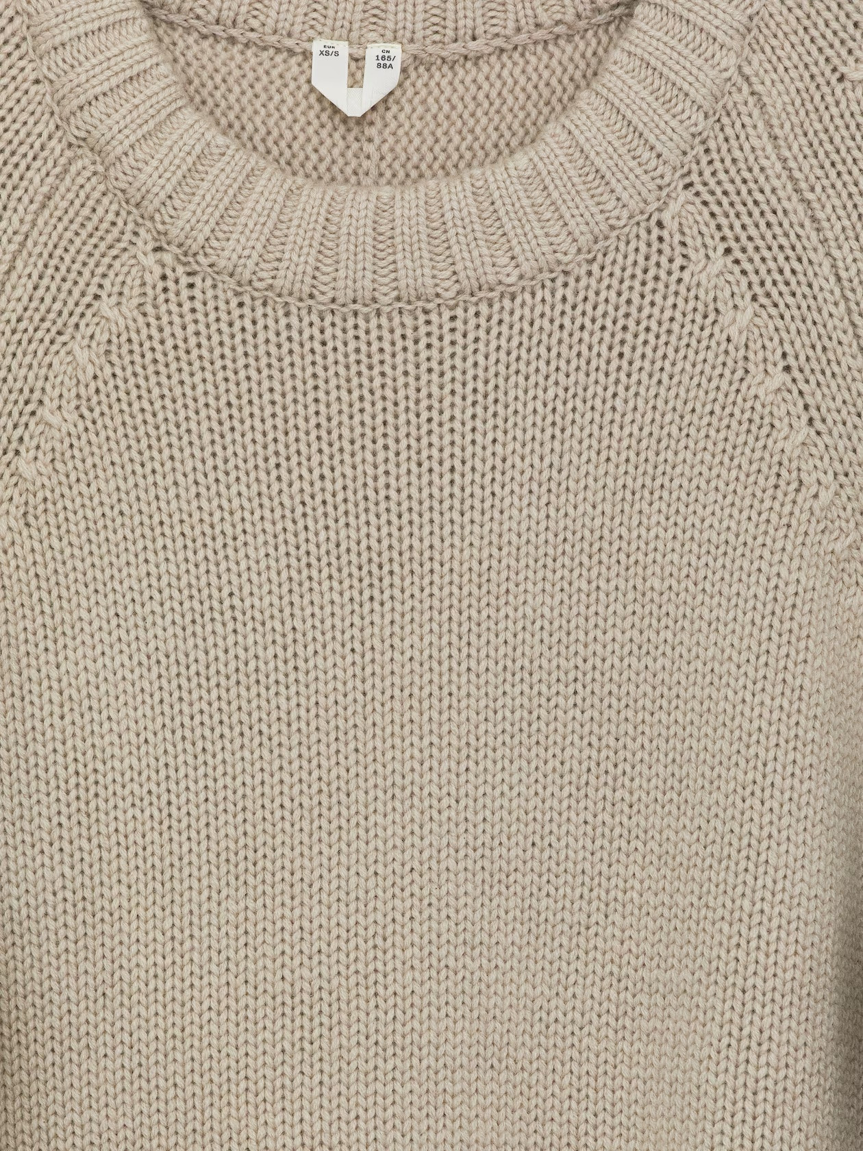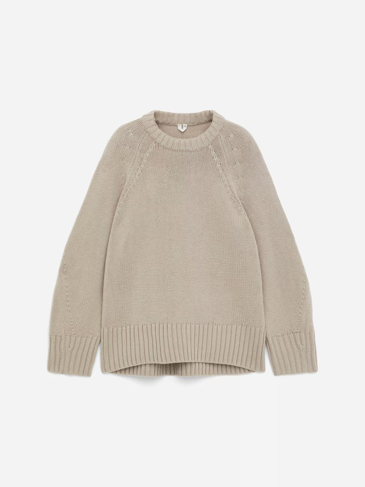 A crew neck sweater in pure cashmere. A chunky knit style with an oversized, cocoon-like silhouette and twisted sleeves. This style is made from 100% GCS-certified cashmere. The Good Cashmere Standard (GCS), established by the Aid by Trade Foundation (AbTF), sets criteria regarding animal welfare, land management, and the working conditions of the shepherds. The percentage refers to the main material, not the yarn.